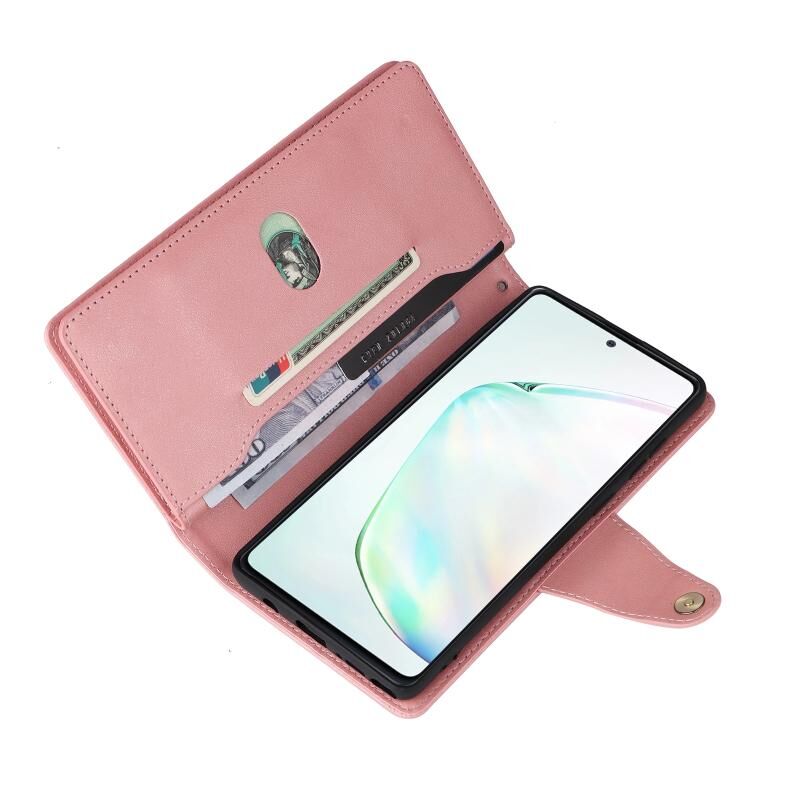Για Samsung Galaxy Note10 Lite Rivet πόρπη 9 κάρτες τρεις φορές δερμάτινη θήκη τηλεφώνου (ροζ χρυσό)