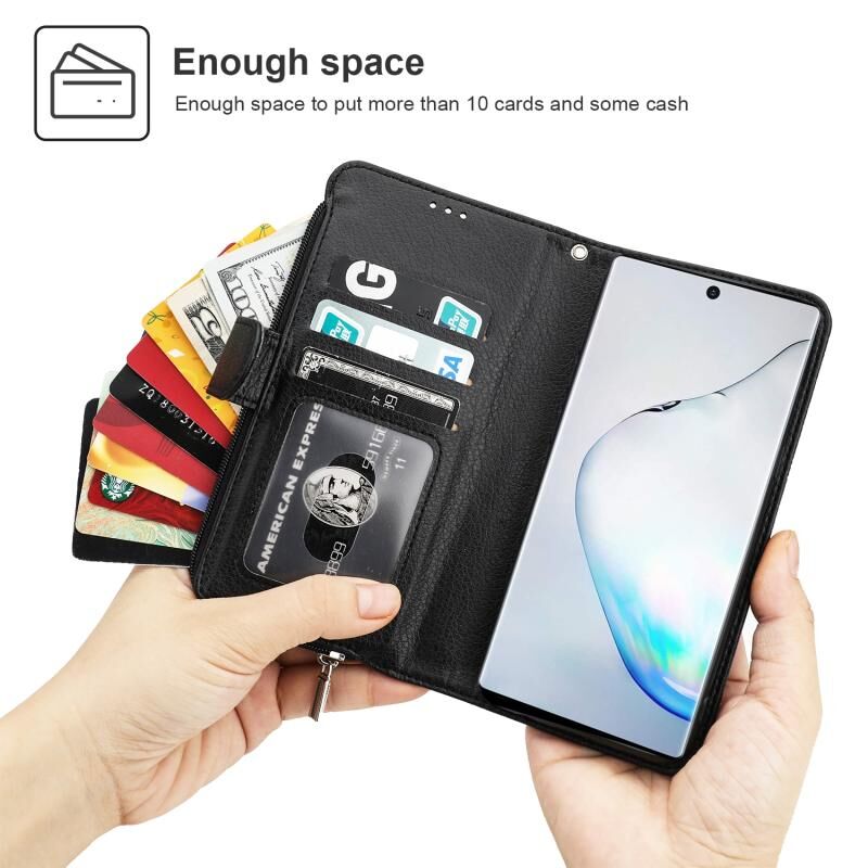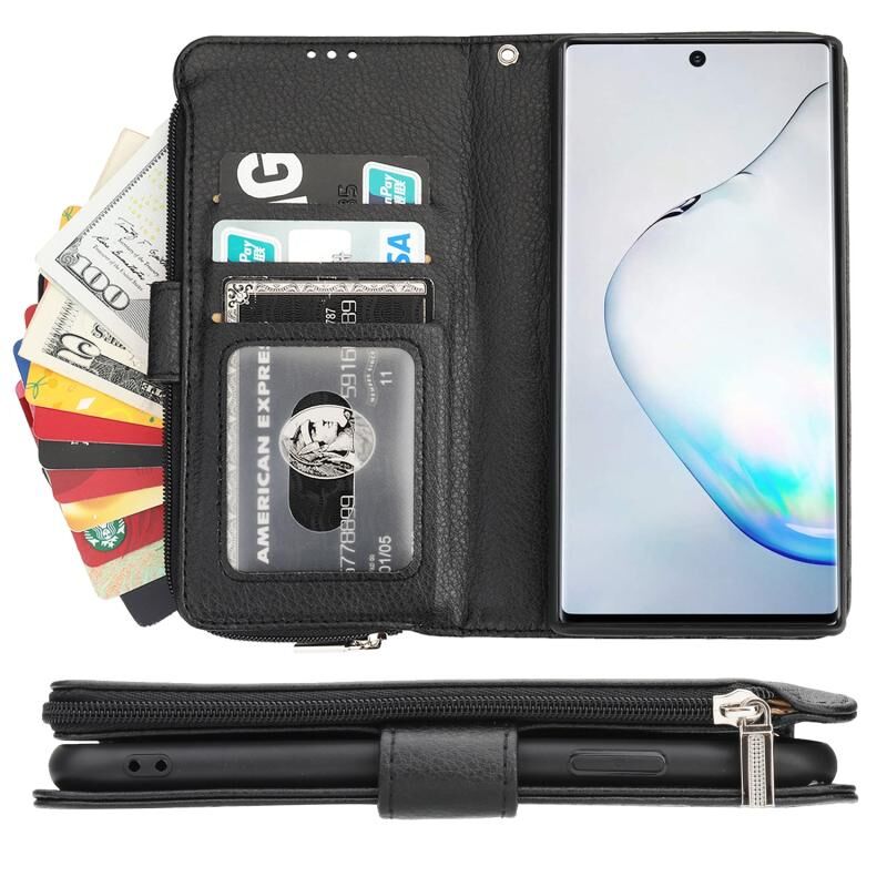 Για Samsung Galaxy Note10 Microfiber φερμουάρ οριζόντια Flip δερμάτινη θήκη (Μαύρο)