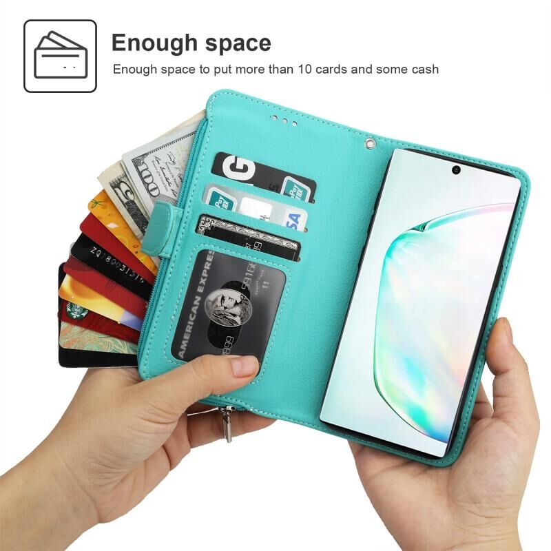 Για Samsung Galaxy Note10+ Microfiber φερμουάρ οριζόντια Flip δερμάτινη θήκη (πράσινο)