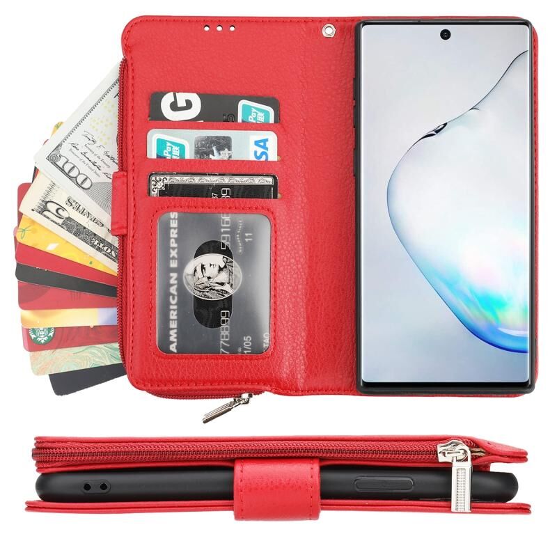 Για Samsung Galaxy Note10 Microfiber φερμουάρ οριζόντια Flip δερμάτινη θήκη (κόκκινο)