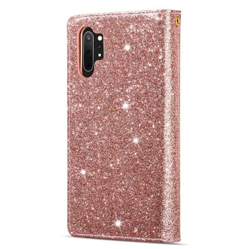 Θήκη δέρματος οριζόντιας αναδίπλωσης με φερμουάρ, με λαμπερό σχέδιο χάραξης λέιζερ αστρικού ουρανού, πολλαπλές θήκες καρτών για Samsung Galaxy Note10, με βάση, πορτοφόλι και λουρί (Μωβ)