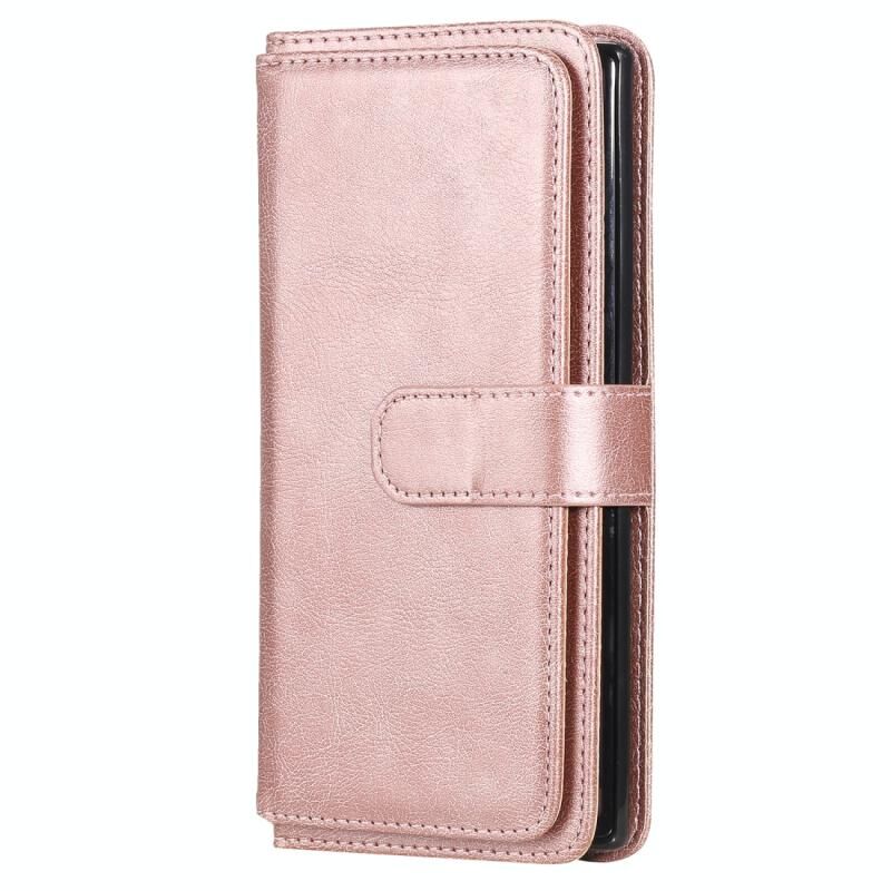 Για Samsung Galaxy Note10+ Πολυλειτουργική μαγνητική χάλκινη πόρπη οριζόντια Flip αμιγούς χρώματος δερμάτινη θήκη με 10 υποδοχές για κάρτες & πορτοφόλι & θήκη & κορνίζα φωτογραφιών (ροζ χρυσό)