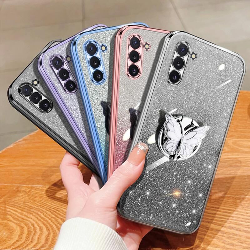Για Samsung Galaxy Note10 Επιμεταλλωμένο διαβάθμιση Glitter πεταλούδα κάτοχος TPU υπόθεση τηλεφώνου (μωβ)