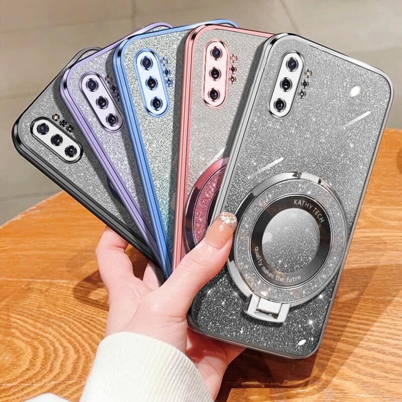 Για Samsung Galaxy Note10+ Επιμεταλλωμένο διαβάθμιση Glitter στρογγυλή θήκη TPU τηλέφωνο κάτοχος (Sierra Blue)