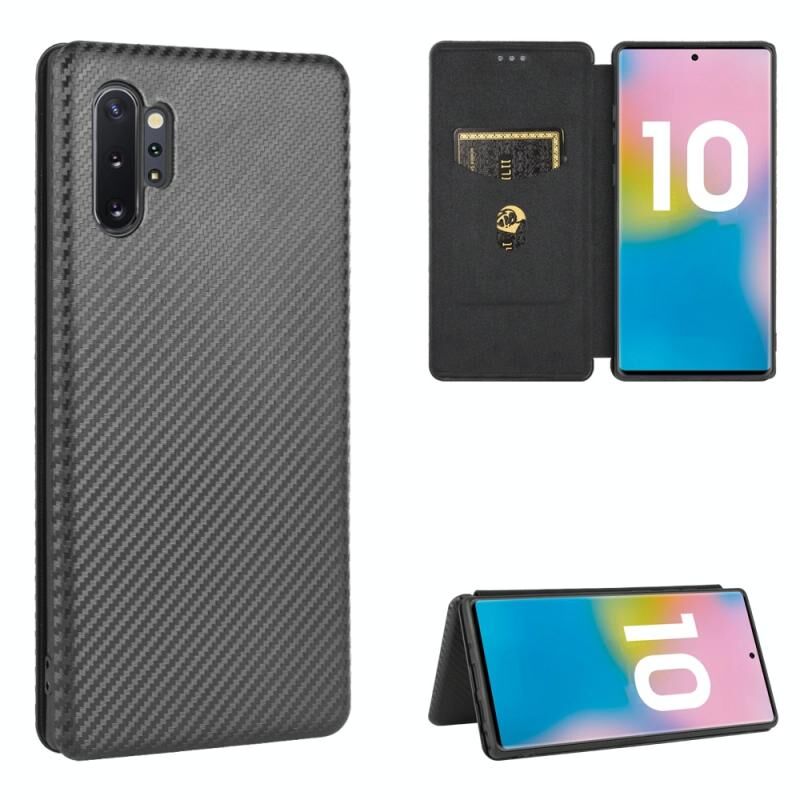 Για Samsung Galaxy Note10 Plus Carbon Fiber Texture Οριζόντια Flip TPU + PC + PU δέρμα υπόθεση με υποδοχή κάρτας (μαύρο)