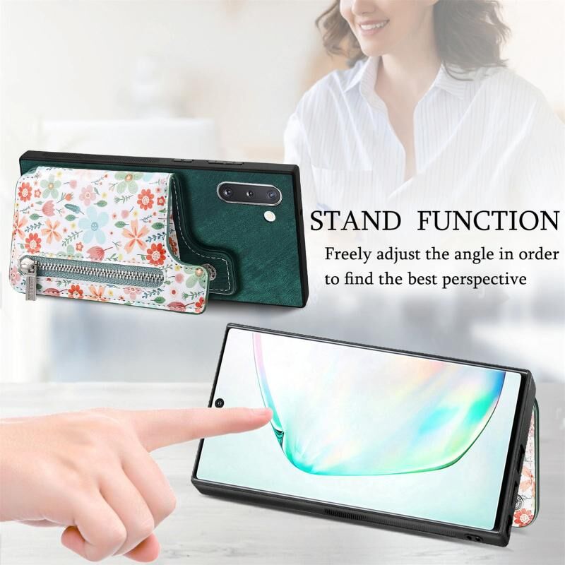 Για Samsung Galaxy Note10 Ρετρό ζωγραφισμένο φερμουάρ πορτοφόλι πίσω θήκη τηλεφώνου (πράσινο)