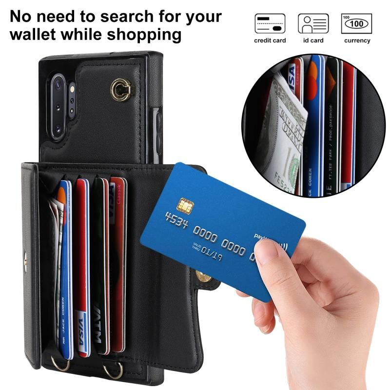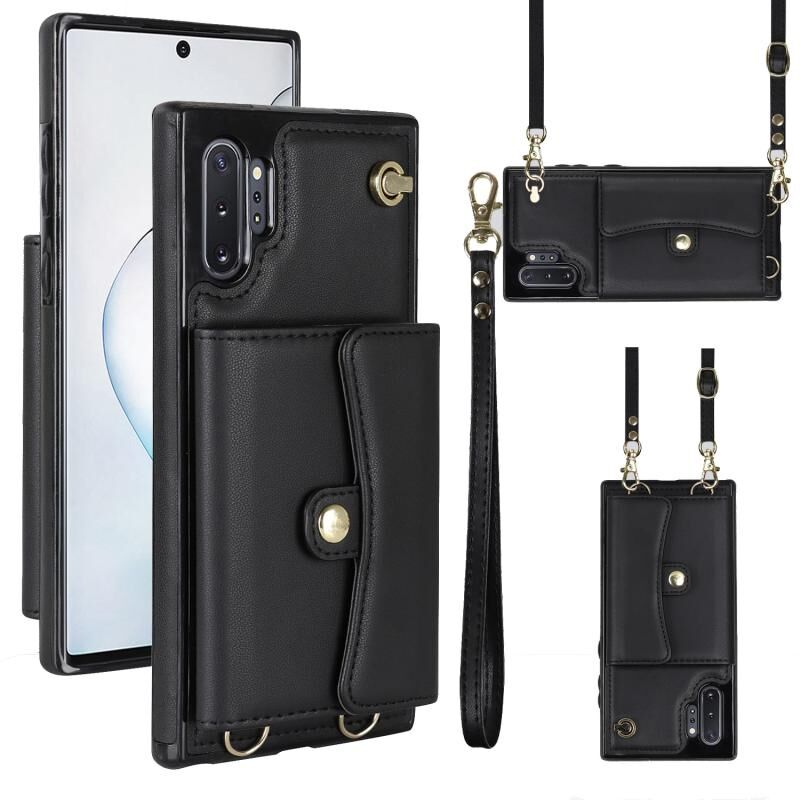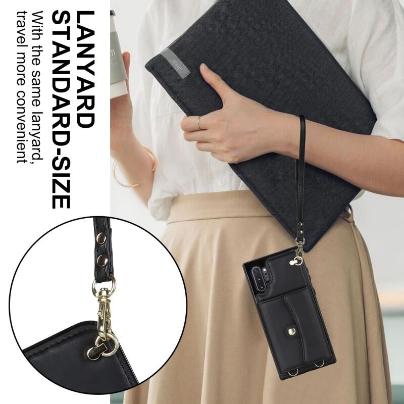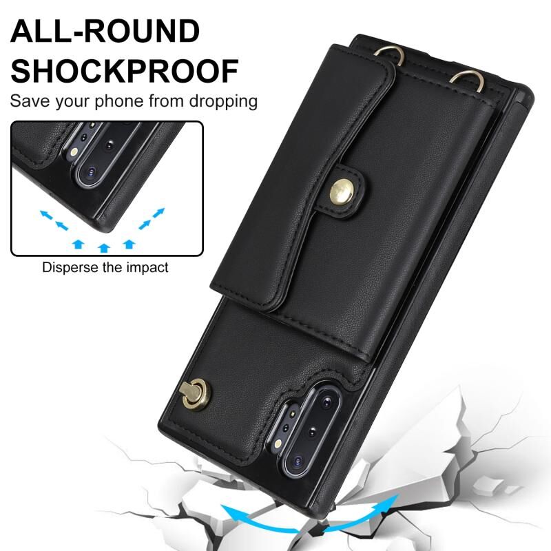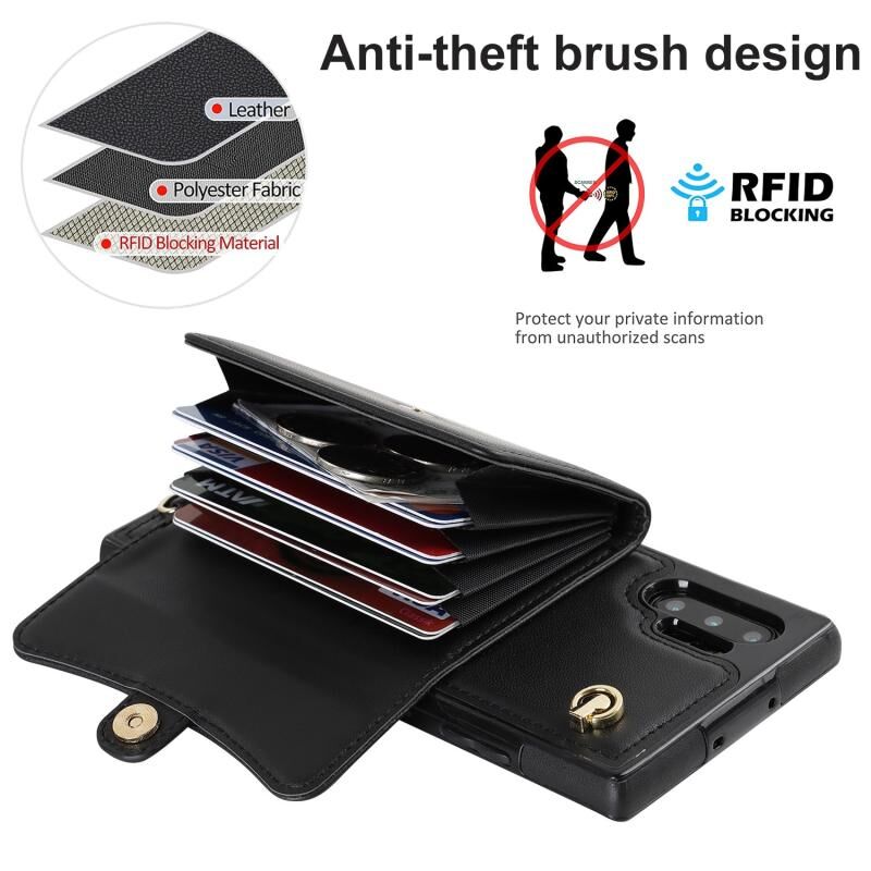 Για Samsung Galaxy Note10 RFID Slot κάρτα δερμάτινη θήκη τηλεφώνου με μακρύ κορδόνι (Μαύρο)