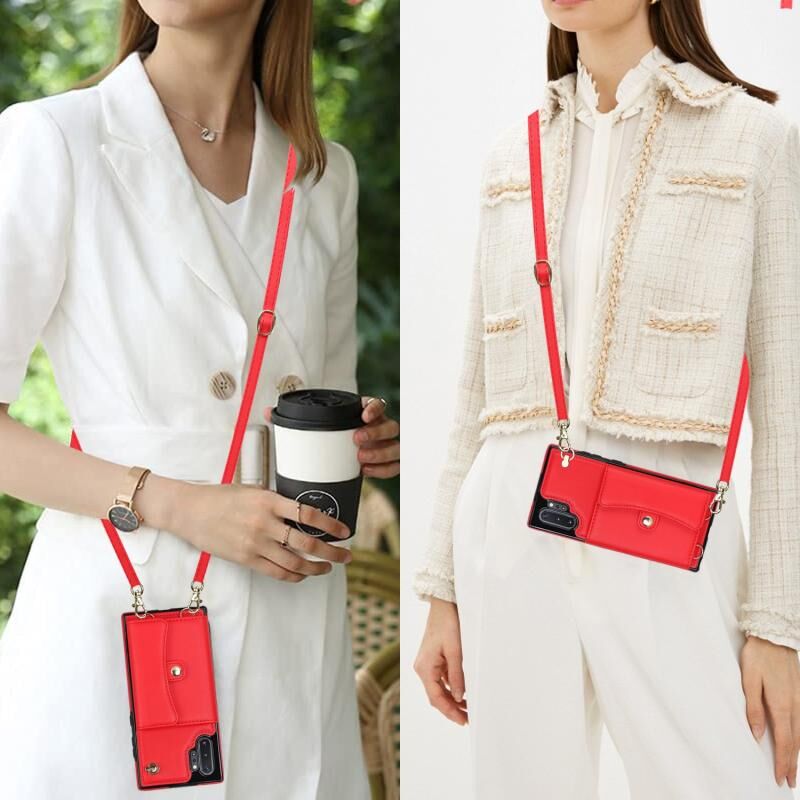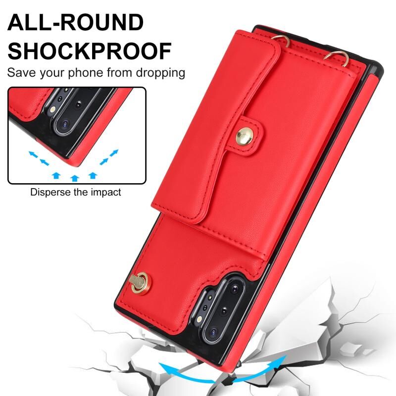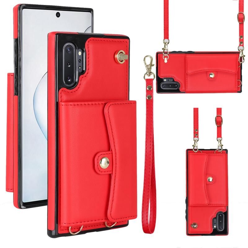 Για Samsung Galaxy Note10 RFID Slot κάρτα δερμάτινη θήκη τηλεφώνου με μακρύ κορδόνι (κόκκινο)