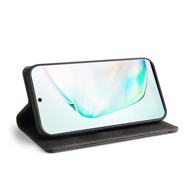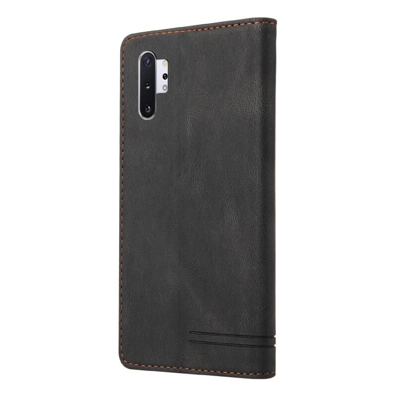 Για Samsung Galaxy Note10+ Skin Feel Anti-theft Brush Οριζόντια Flip δερμάτινη θήκη με θήκη & υποδοχές για κάρτες & πορτοφόλι (Μαύρο)
