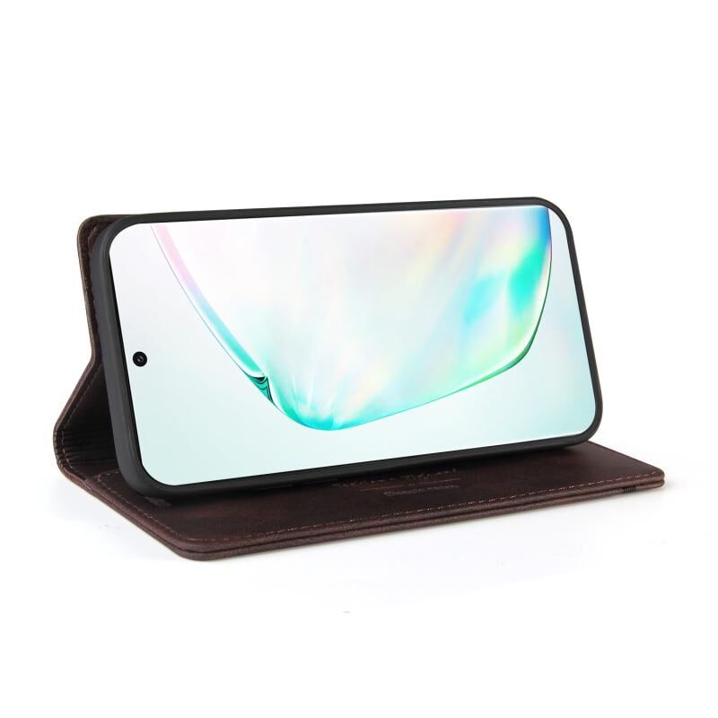 Για Samsung Galaxy Note10+ Skin Feel Anti-theft Brush Οριζόντια Flip δερμάτινη θήκη με θήκη & υποδοχές για κάρτες & πορτοφόλι (Καφέ)
