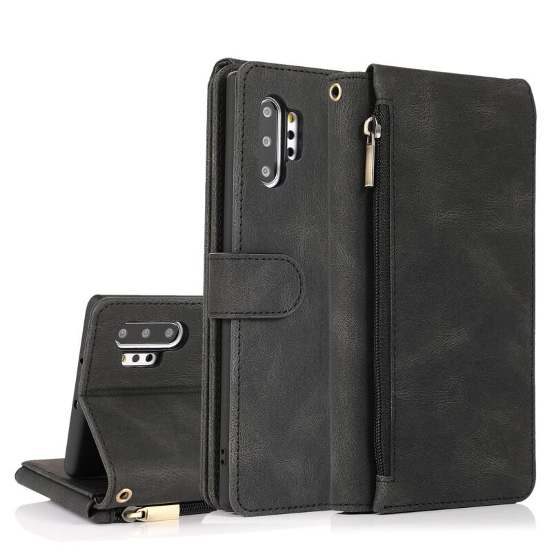 Για Samsung Galaxy Note10+ Skin-feel Crazy Horse υφή φερμουάρ τσάντα πορτοφόλι οριζόντια Flip δερμάτινη θήκη με κάτοχο & υποδοχές για κάρτες & πορτοφόλι & Lanyard (Μαύρο)
