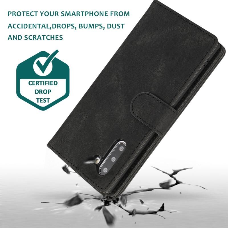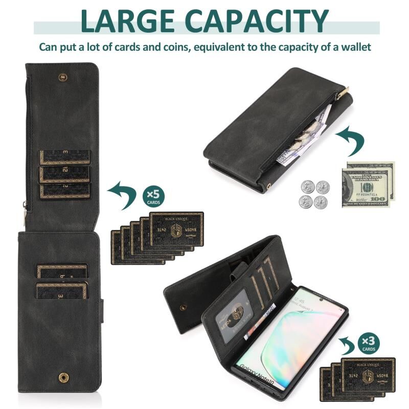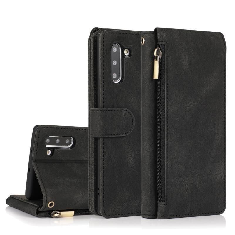 Για Samsung Galaxy Note10 Skin-feel Crazy Horse υφή φερμουάρ τσάντα πορτοφόλι οριζόντια Flip δερμάτινη θήκη με κάτοχο & υποδοχές για κάρτες & πορτοφόλι & Lanyard (Μαύρο)