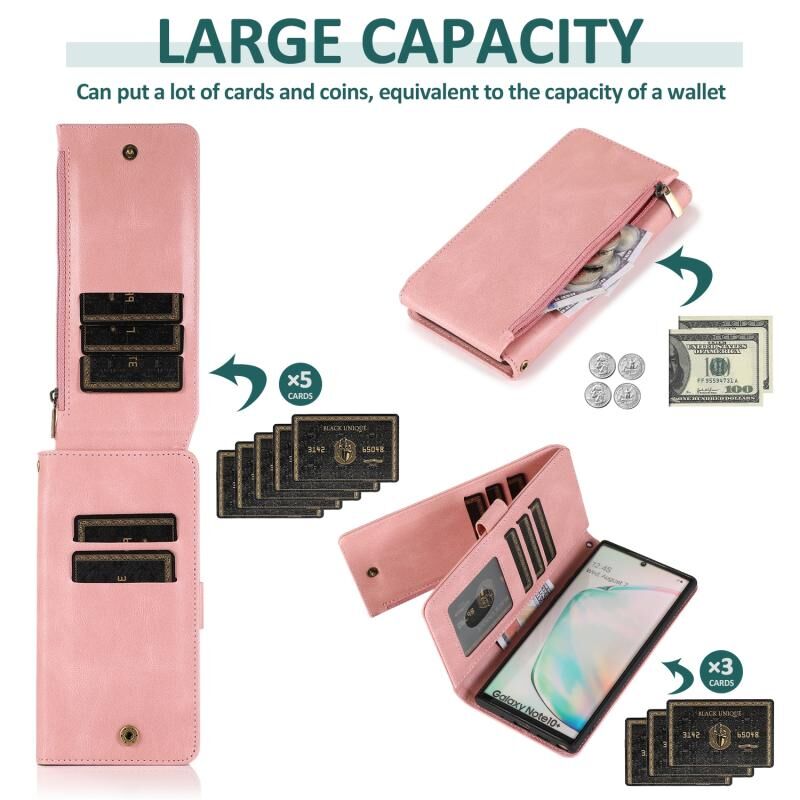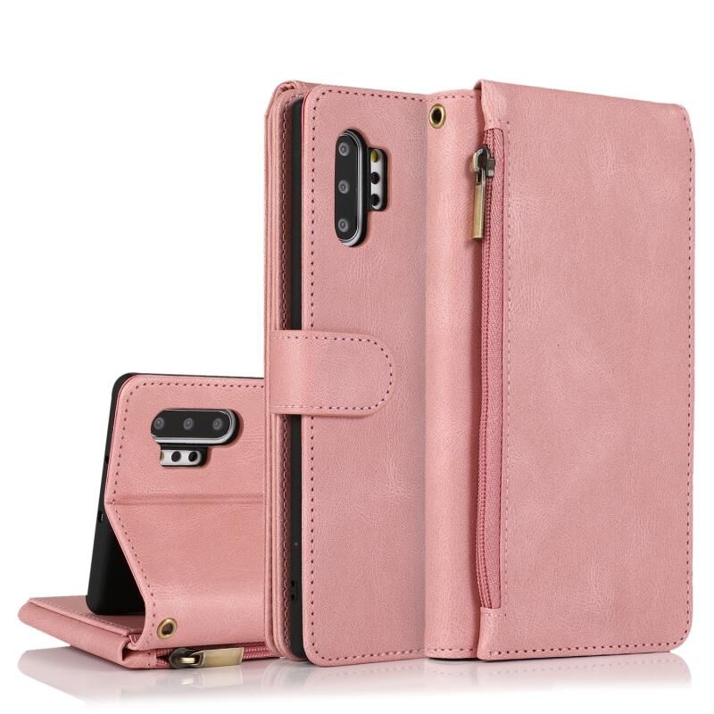 Για Samsung Galaxy Note10+ Skin-feel Crazy Horse υφή φερμουάρ τσάντα πορτοφόλι οριζόντια Flip δερμάτινη θήκη με κάτοχο & υποδοχές για κάρτες & πορτοφόλι & Lanyard (Ροζ χρυσός)