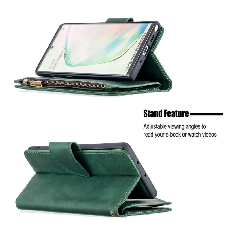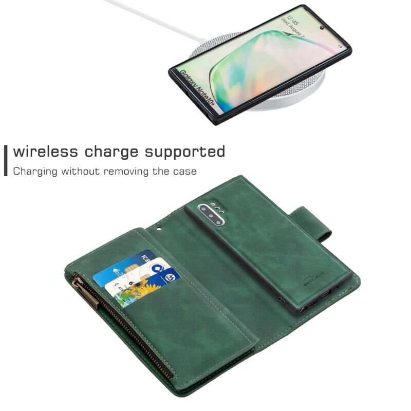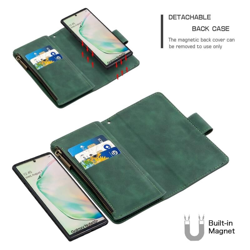 Για το Samsung Galaxy Note10+ Skin Feel Αποσπώμενη μαγνητική θήκη με φερμουάρ και οριζόντια αναδιπλούμενη PU δερμάτινη θήκη με υποδοχές για πολλαπλές κάρτες & θήκη για πορτοφόλι & κορνίζα φωτογραφιών & κορδόνι (πράσινο)