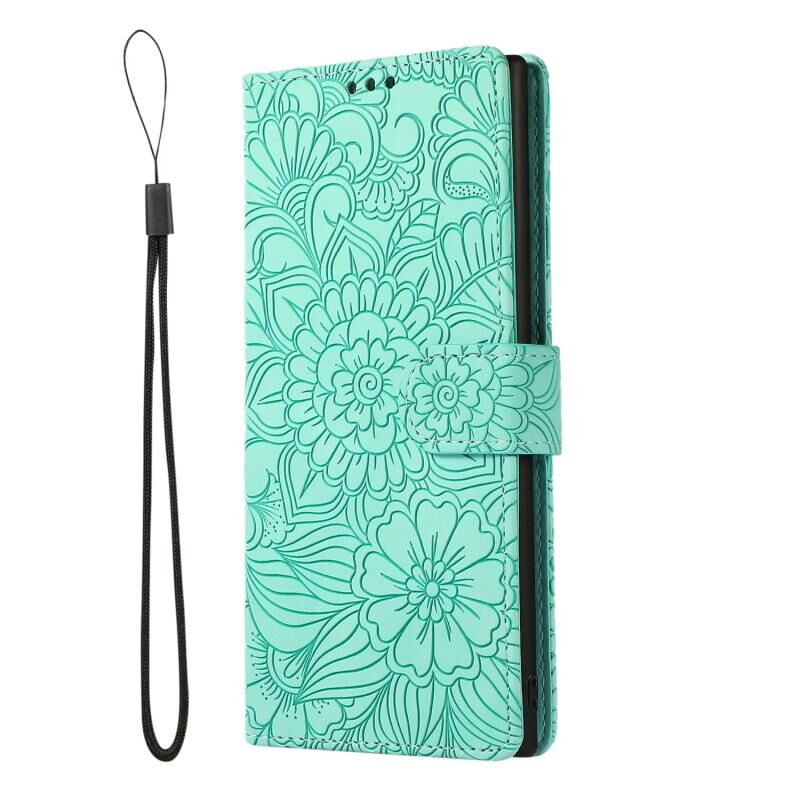 Για Samsung Galaxy Note10 + δέρμα αίσθηση ανάγλυφο ηλιοτρόπιο οριζόντια Flip δερμάτινη θήκη με θήκη & υποδοχές για κάρτες & πορτοφόλι & κορδόνι (πράσινο)