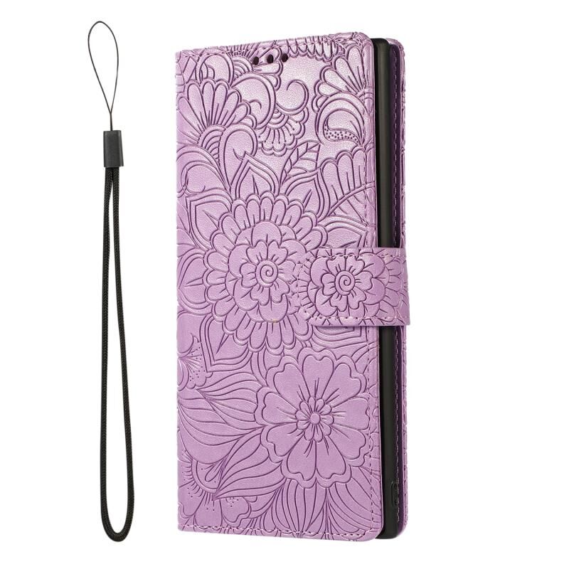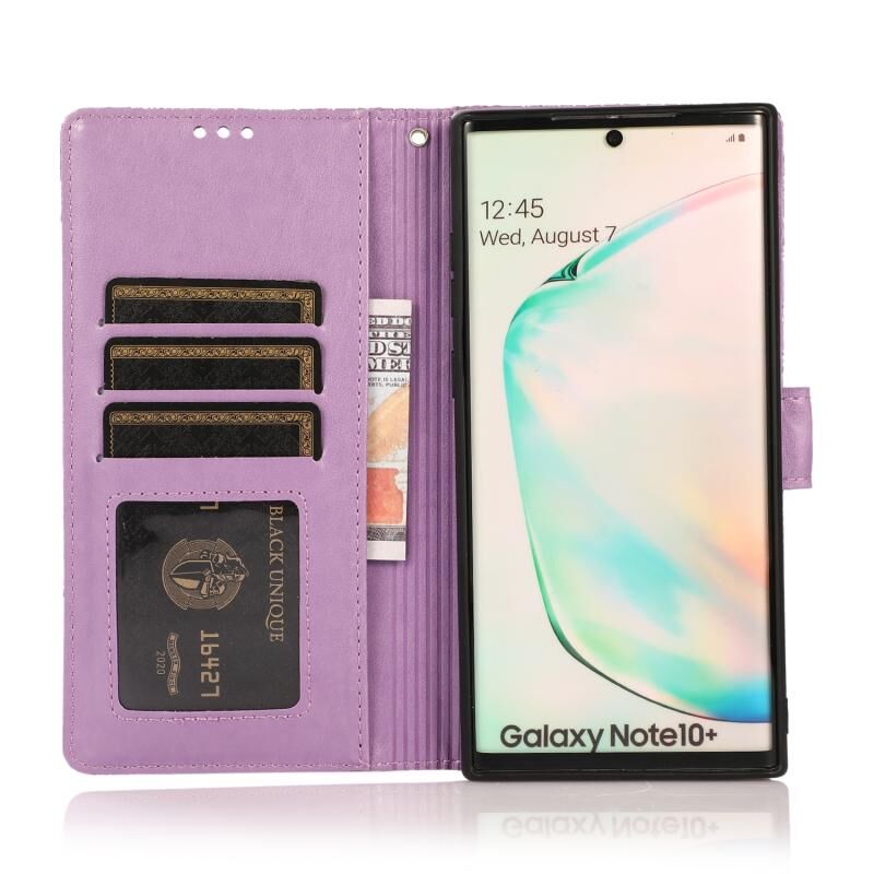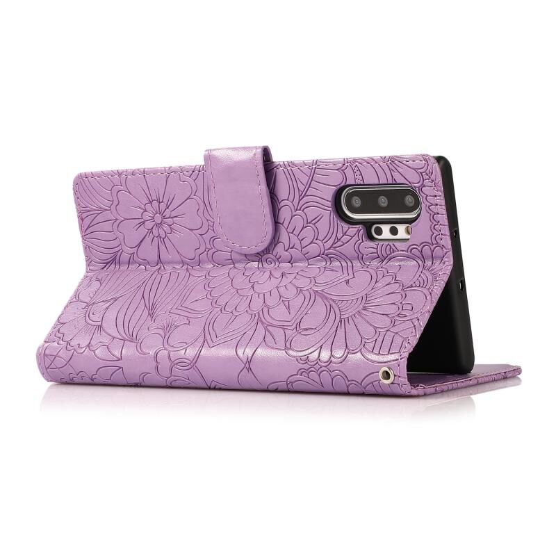 Για Samsung Galaxy Note10 + δέρμα αίσθηση ανάγλυφο ηλιοτρόπιο οριζόντια Flip δερμάτινη θήκη με θήκη & υποδοχές για κάρτες & πορτοφόλι & κορδόνι (Μωβ)