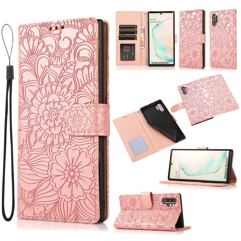 Για Samsung Galaxy Note10 + δέρμα αίσθηση ανάγλυφο ηλιοτρόπιο οριζόντια Flip δερμάτινη θήκη με θήκη & υποδοχές για κάρτες & πορτοφόλι & κορδόνι (Rose Gold)