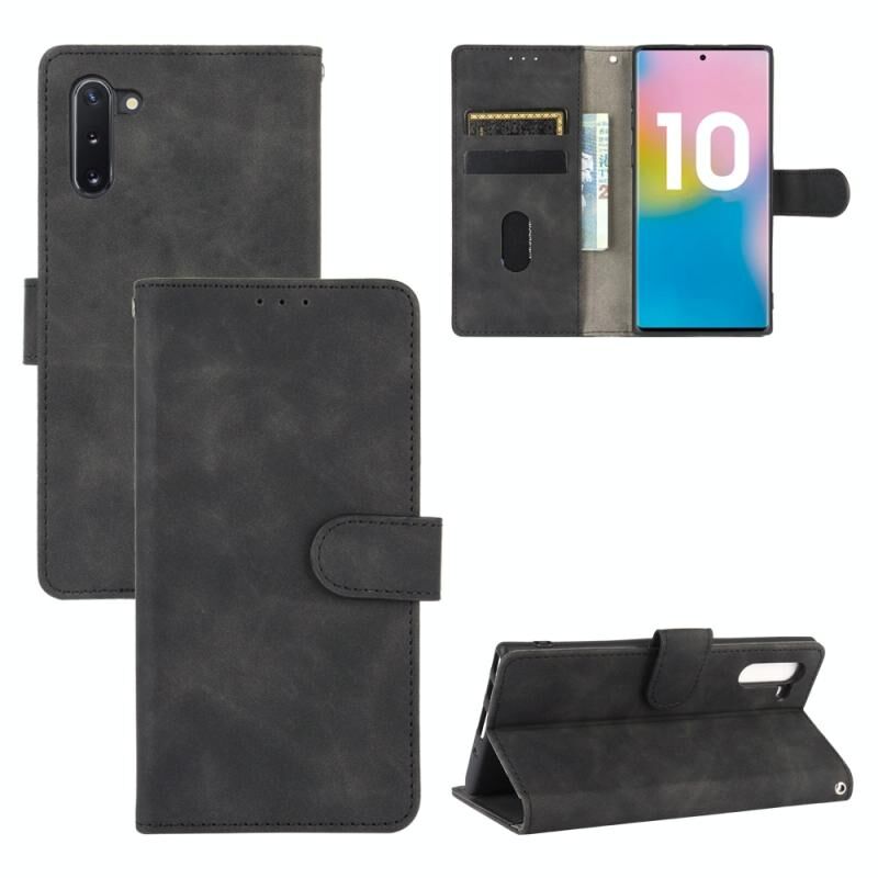 Για Samsung Galaxy Note10 Αμιγές χρώμα δέρμα αίσθηση μαγνητική πόρπη οριζόντια Flip μοσχάρι υφή PU δέρμα υπόθεση με κάτοχο & υποδοχές για κάρτες & πορτοφόλι (μαύρο)