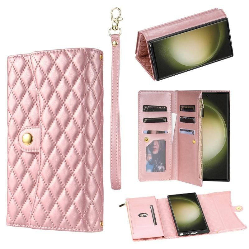 Για Samsung Galaxy Note10 + φερμουάρ πολλαπλών καρτών πορτοφόλι ρομβοειδή δερμάτινη θήκη τηλεφώνου (ροζ χρυσό)