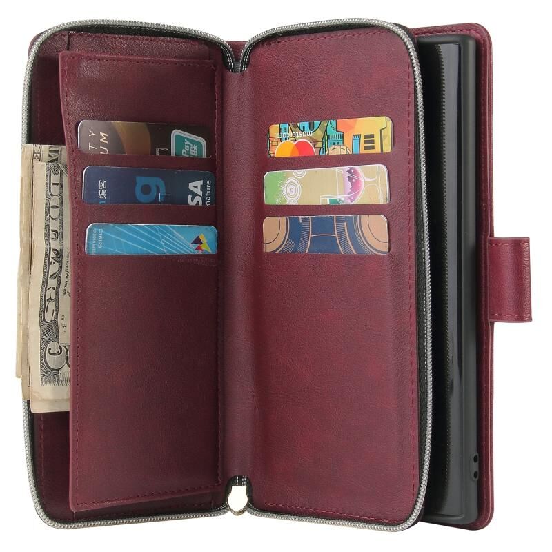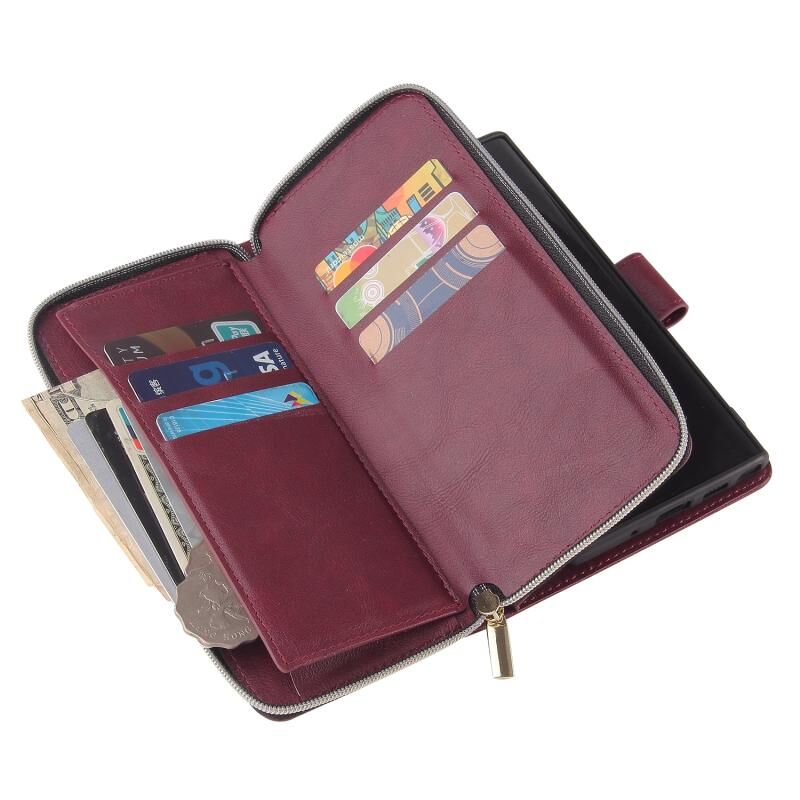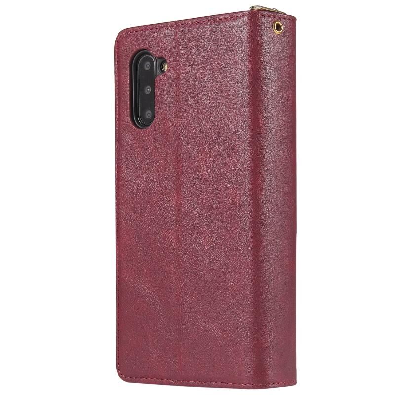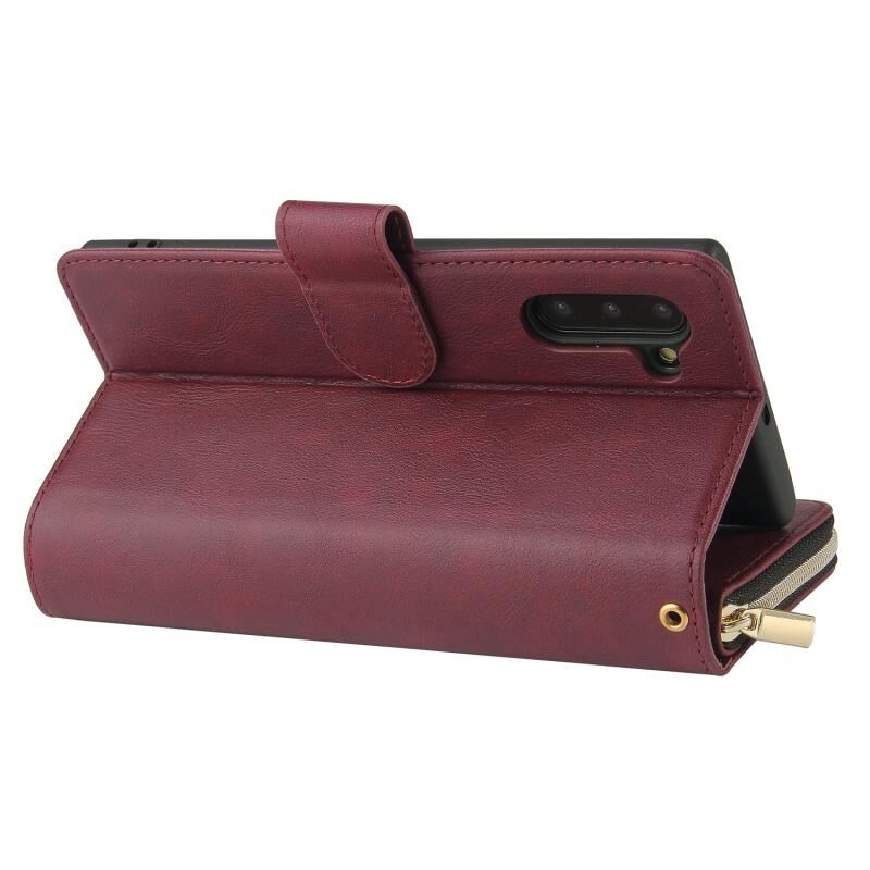 Για Samsung Galaxy Note10 φερμουάρ τσάντα πορτοφόλι οριζόντια Flip PU δερμάτινη θήκη με κάτοχο & 9 υποδοχές για κάρτες & πορτοφόλι & κορδόνι & κορνίζα φωτογραφιών (κόκκινο κρασί)
