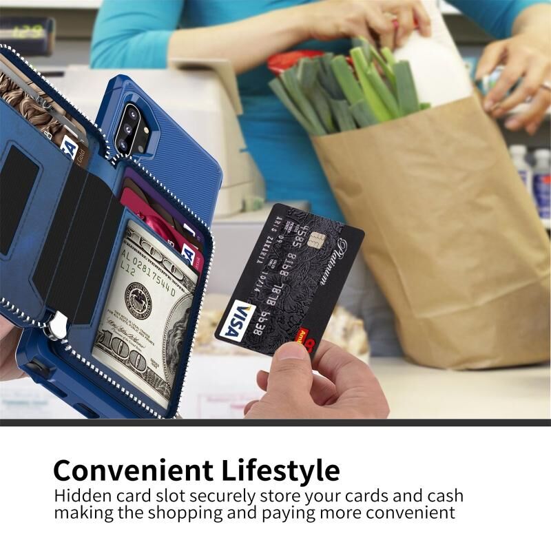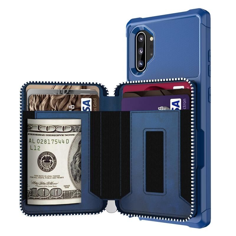 Για Samsung Galaxy Note10 φερμουάρ πορτοφόλι κάρτα τσάντα PU πίσω υπόθεση τηλεφώνου (μπλε)