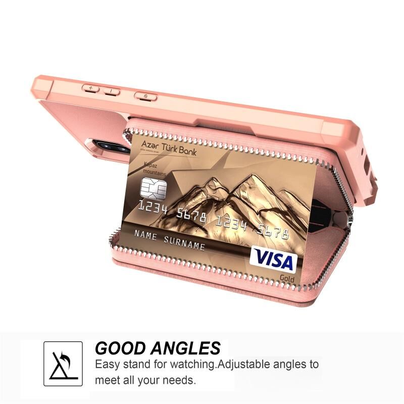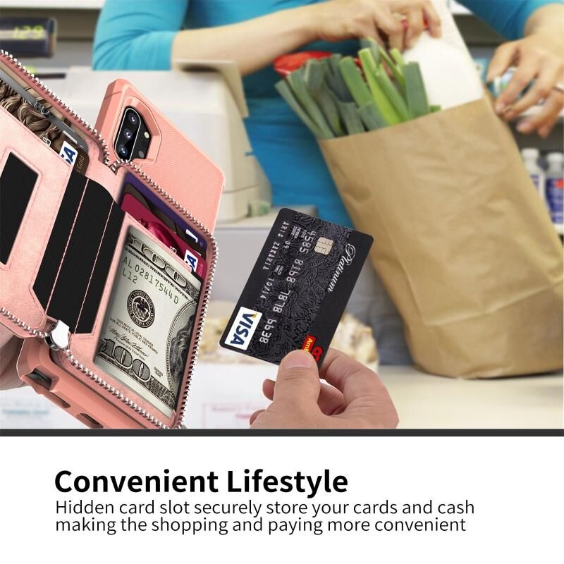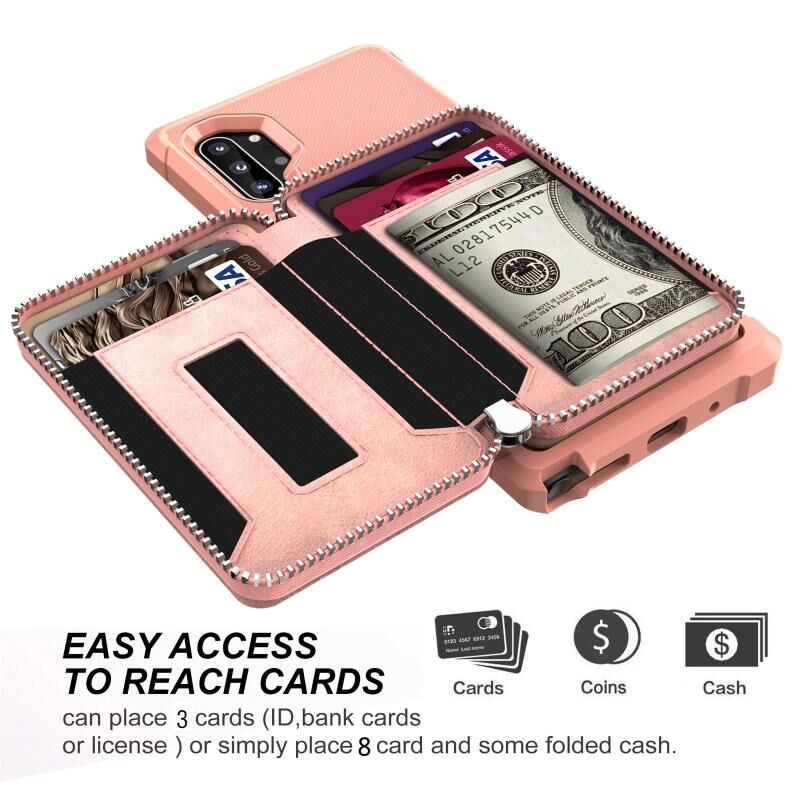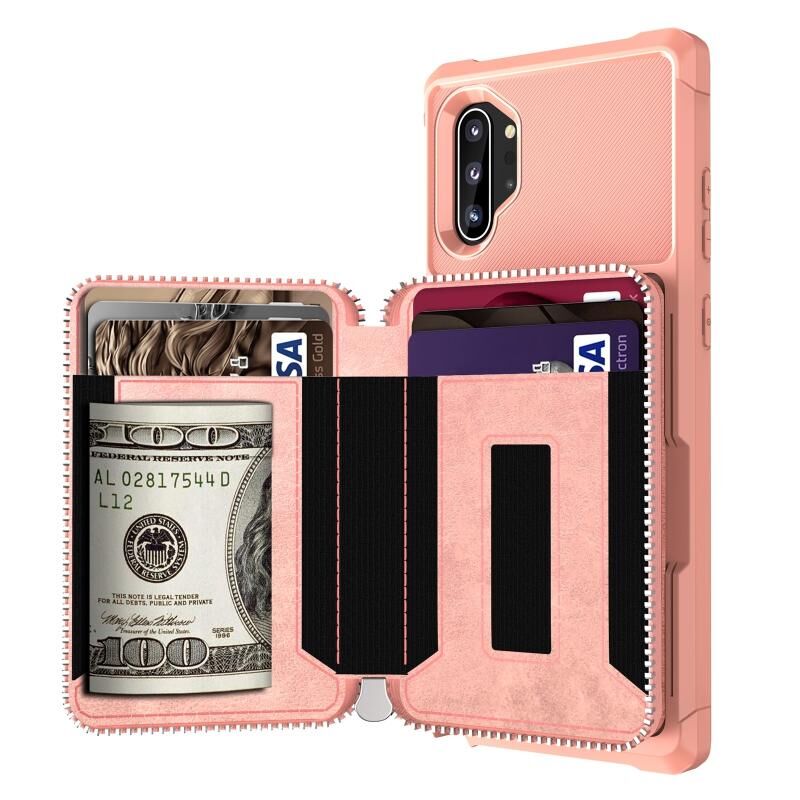 Για Samsung Galaxy Note10 φερμουάρ πορτοφόλι κάρτα τσάντα PU πίσω υπόθεση τηλεφώνου (Rose Gold)