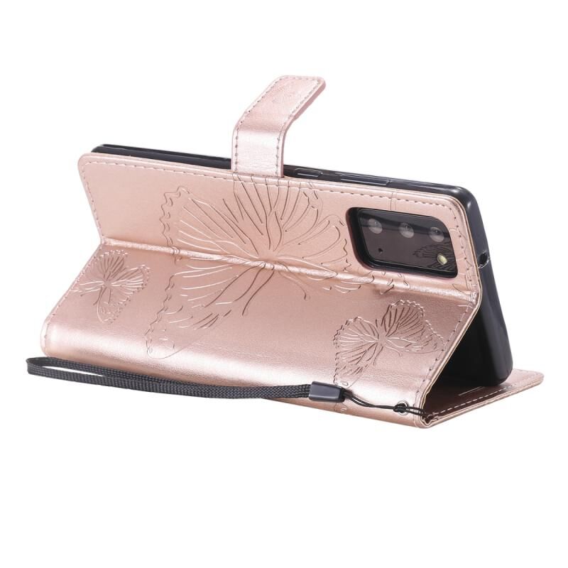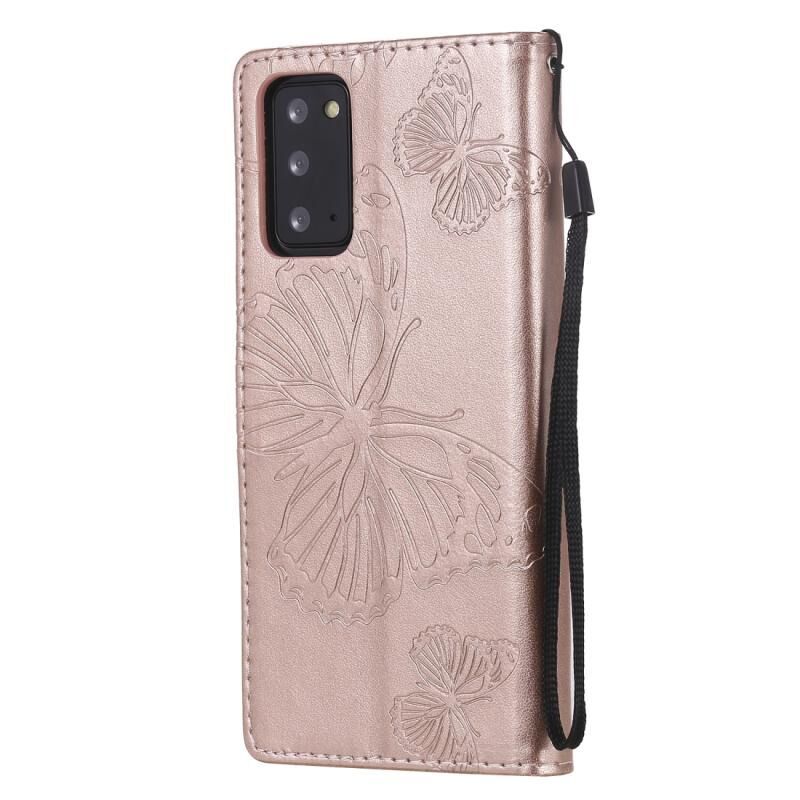 For Samsung Galaxy Note20 3D Butterflies Embossing Pattern Horizontal Flip Leather Case with Holder & Card Slot & Wallet(Rose Gold)