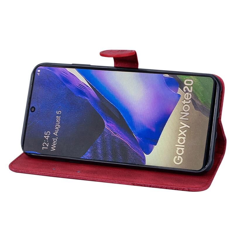 Θήκη Samsung Galaxy Note20 5G, Δερμάτινη, Οριζόντια, με Υφή Retro, ανάγλυφο σχέδιο με πεταλούδες, με Θήκη & Θήκες Καρτών & Πορτοφόλι (Κόκκινο)