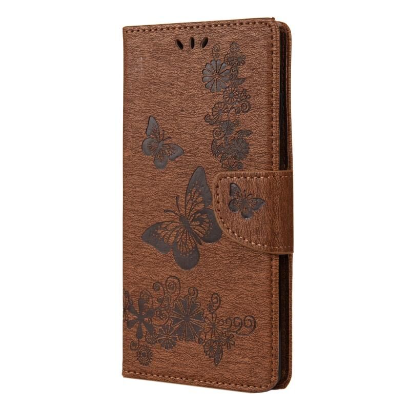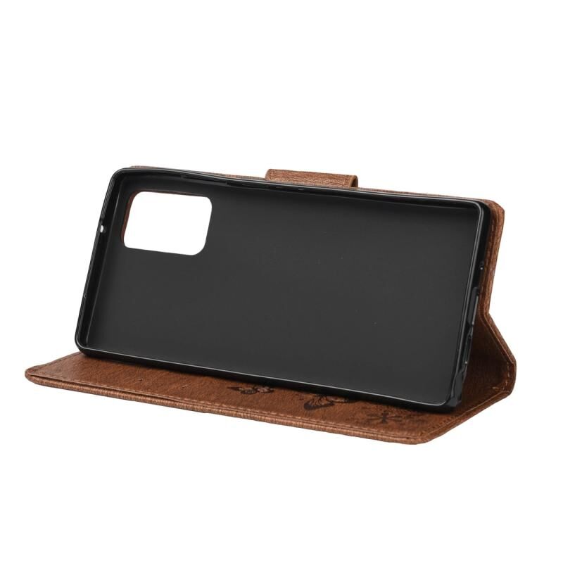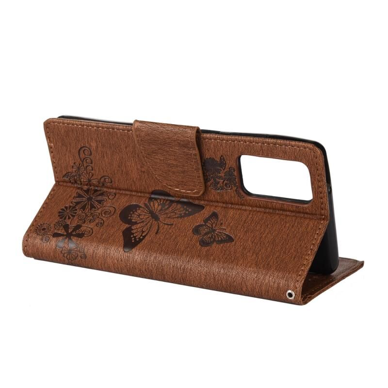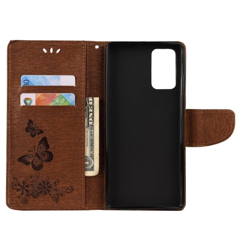 Για Samsung Galaxy Note20 Πεταλούδες ανάγλυφη οριζόντια Flip δερμάτινη θήκη με θήκη & υποδοχές για κάρτες & πορτοφόλι (καφέ)