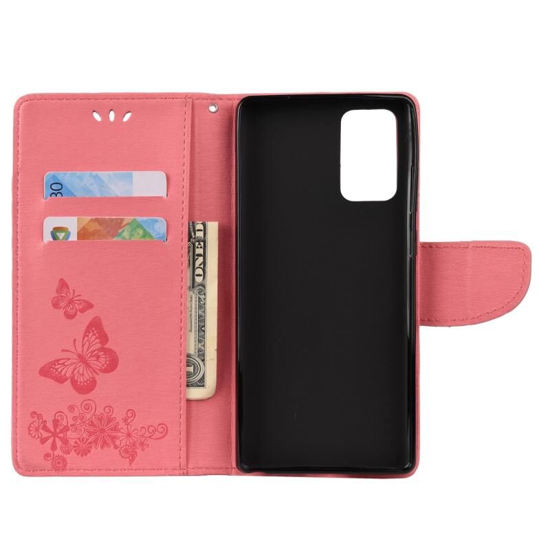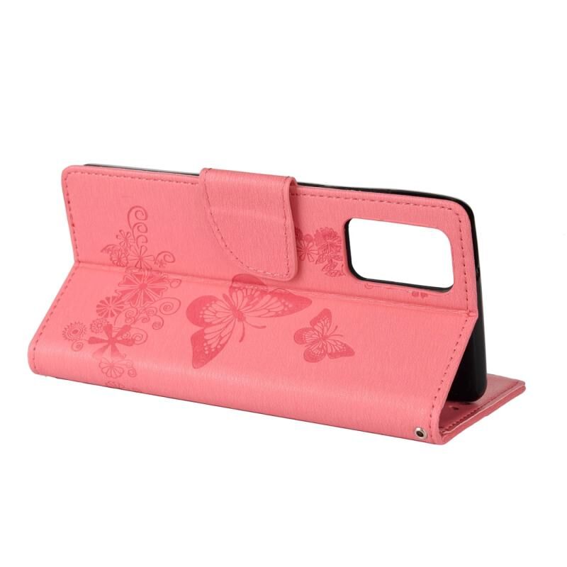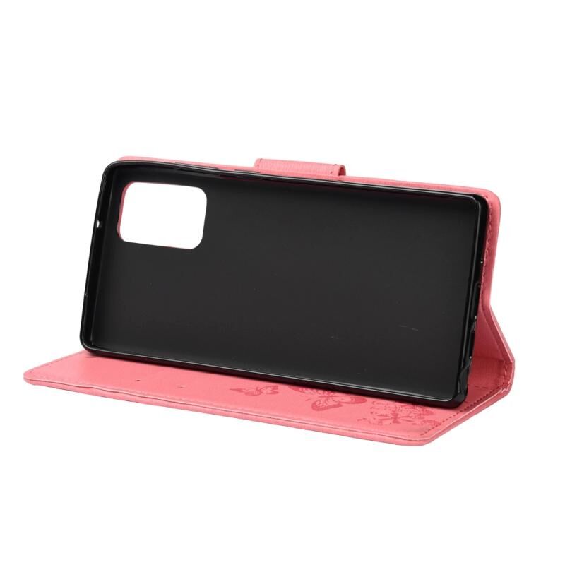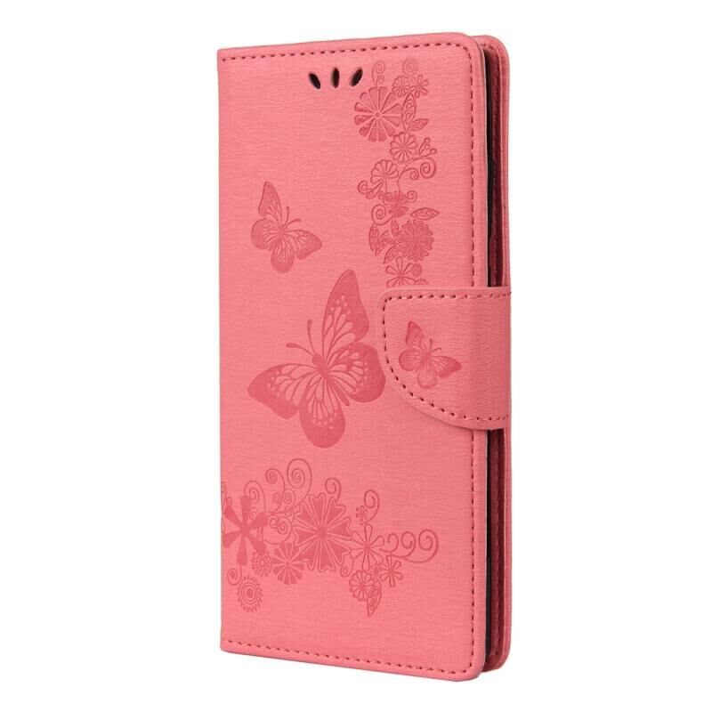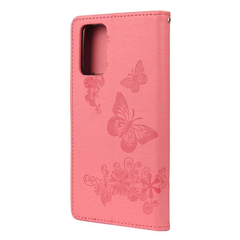 Για Samsung Galaxy Note20 Πεταλούδες ανάγλυφη οριζόντια Flip δερμάτινη θήκη με θήκη & υποδοχές για κάρτες & πορτοφόλι (ροζ)