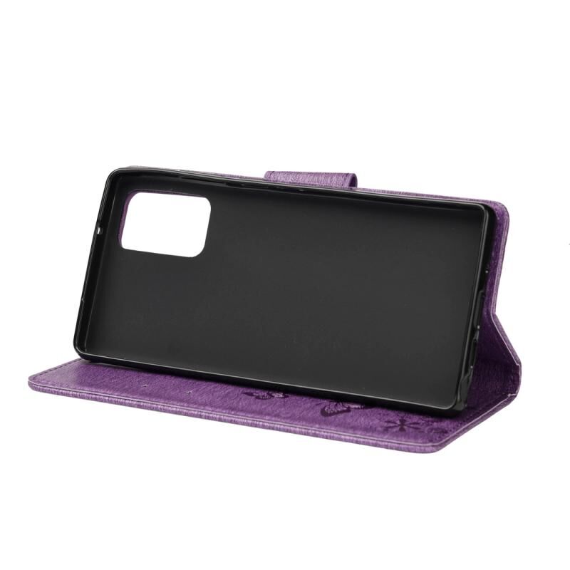 Για Samsung Galaxy Note20 Πεταλούδες ανάγλυφη οριζόντια Flip δερμάτινη θήκη με θήκη & υποδοχές για κάρτες & πορτοφόλι (μωβ)