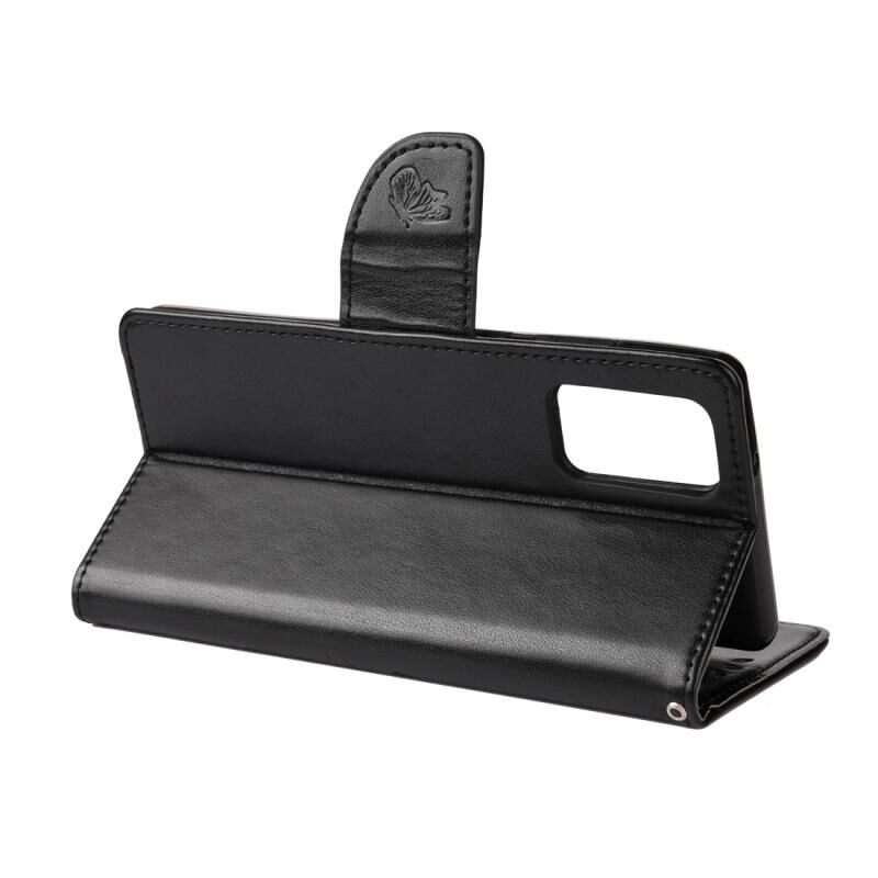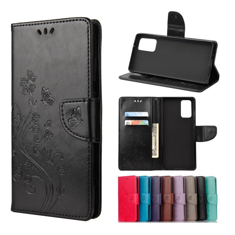 Για Samsung Galaxy Note20 πεταλούδα λουλούδι ανάγλυφο οριζόντια Flip δερμάτινη θήκη με θήκη & υποδοχές για κάρτες & πορτοφόλι (μαύρο)