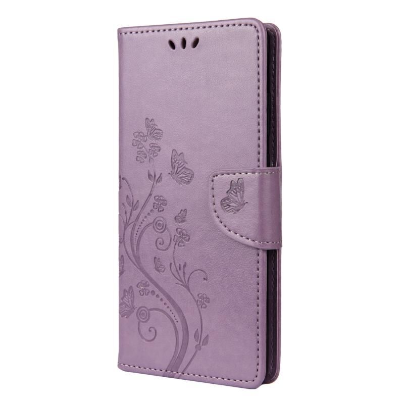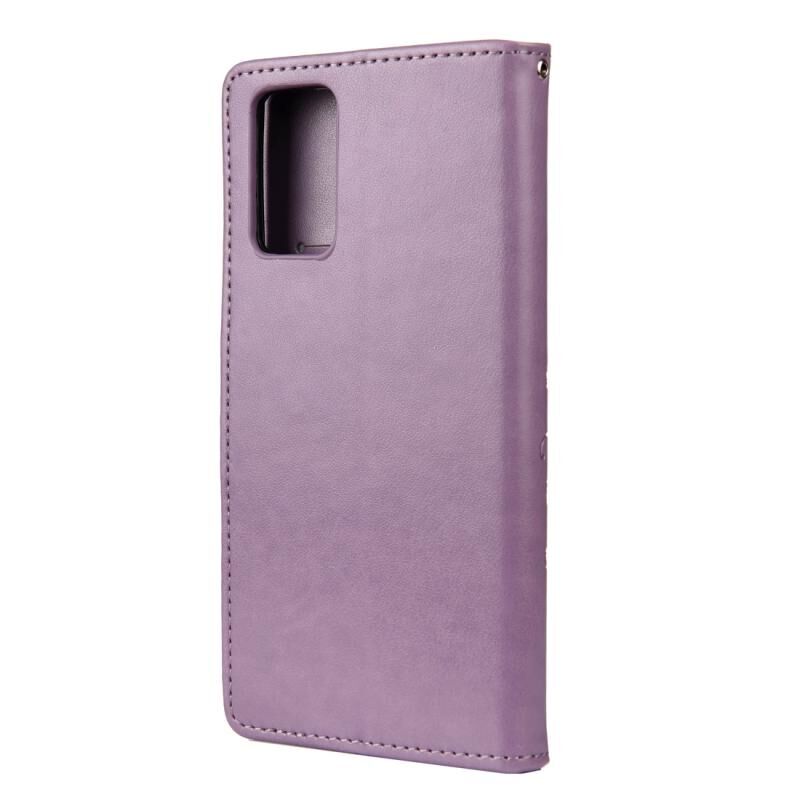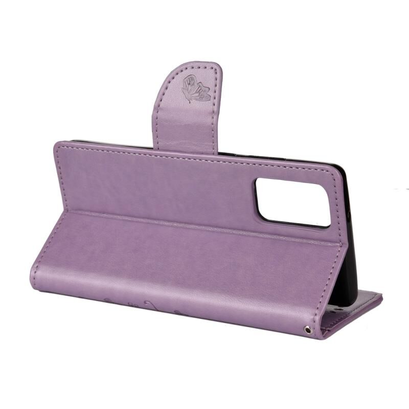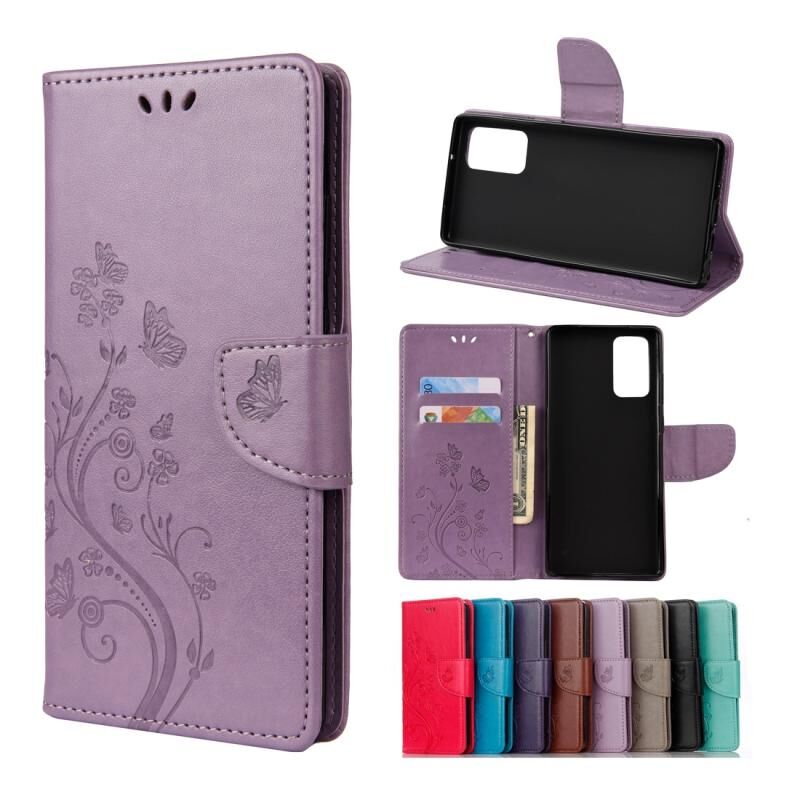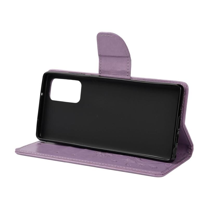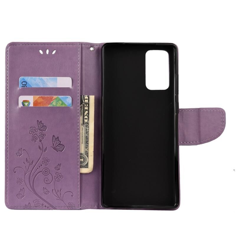 Για Samsung Galaxy Note20 πεταλούδα λουλούδι ανάγλυφο οριζόντια Flip δερμάτινη θήκη με θήκη & υποδοχές για κάρτες & πορτοφόλι (Light Purple)