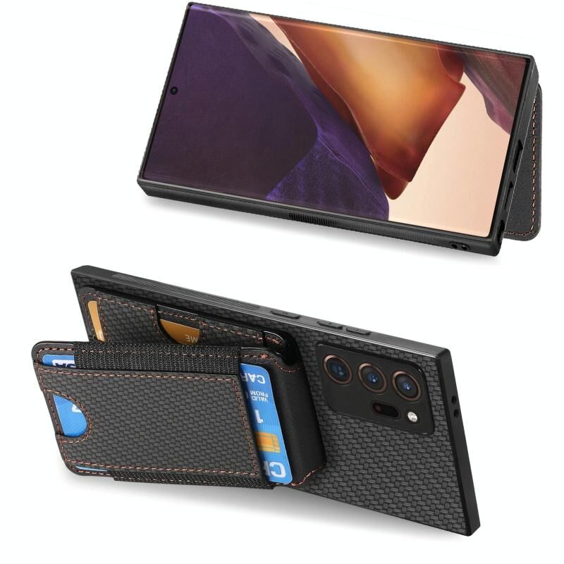 Για Samsung Galaxy Note20 Carbon Fiber Κάθετη Flip Wallet Stand υπόθεση τηλεφώνου (Μαύρο)