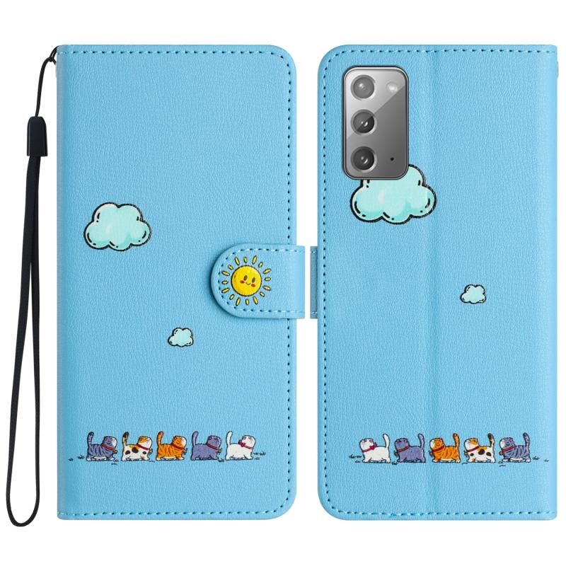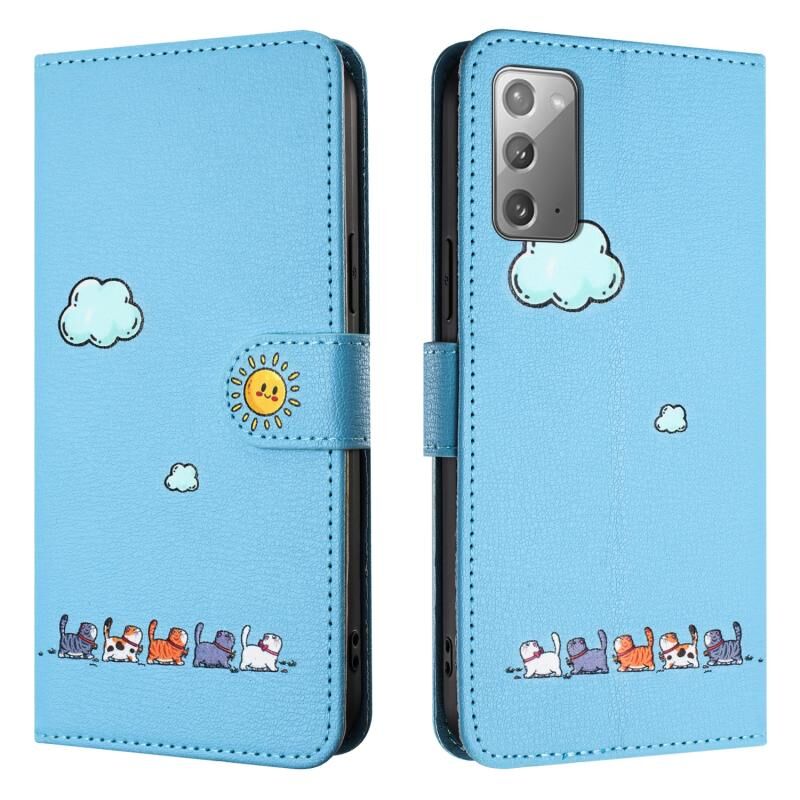 Θήκη τηλεφώνου Samsung Galaxy Note20 από δέρμα με σχέδια γάτας (Μπλε)