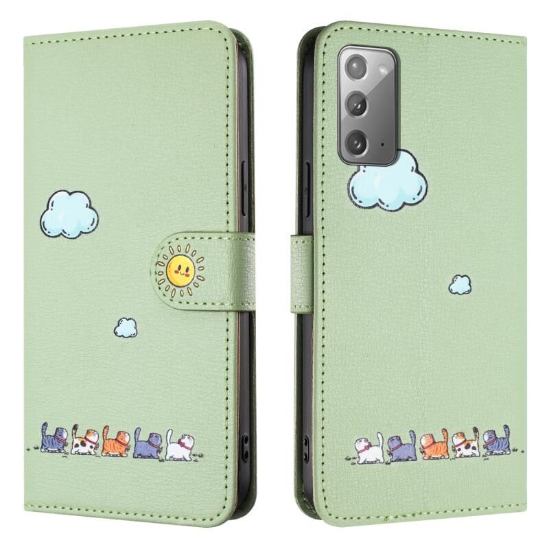Θήκη τηλεφώνου Samsung Galaxy Note20 από δέρμα με σχέδια γάτας (Μπλε)