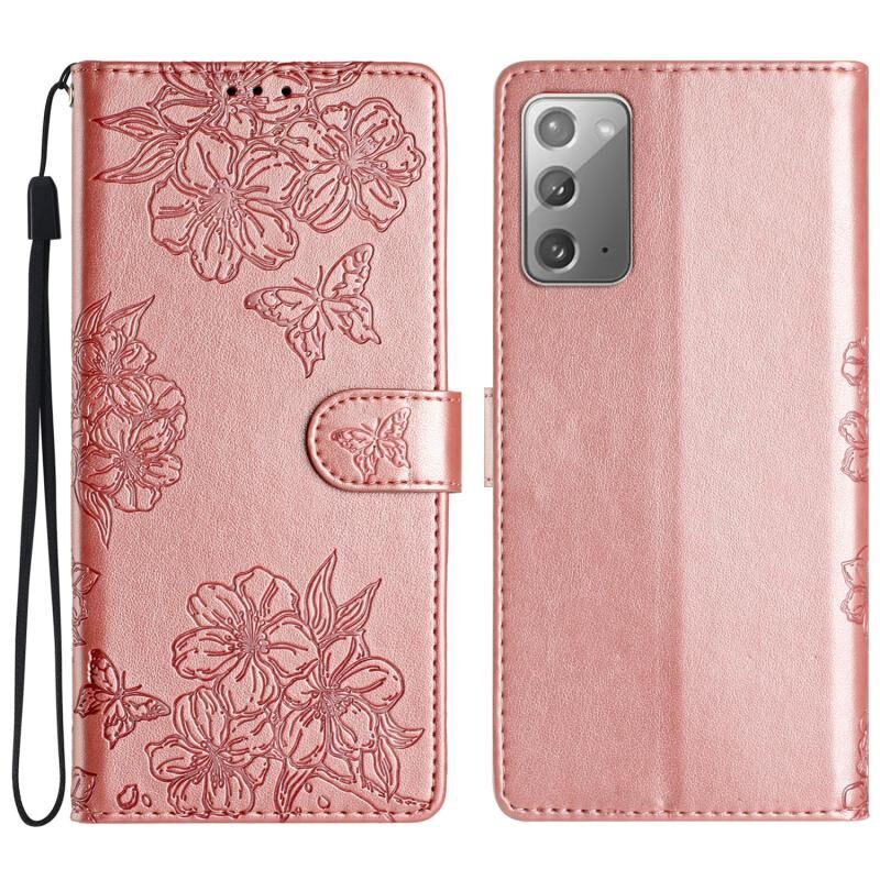 Θήκη τηλεφώνου Samsung Galaxy Note20 Cherry Blossom Butterfly με ανάγλυφη υφή PU (Κόκκινη)