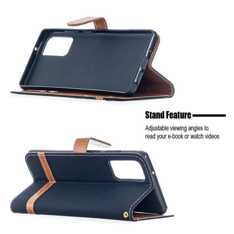 Για Samsung Galaxy Note20 Χρώμα που ταιριάζει Denim υφή οριζόντια Flip δερμάτινη θήκη με θήκη & υποδοχές για κάρτες & πορτοφόλι & κορδόνι (Μαύρο)