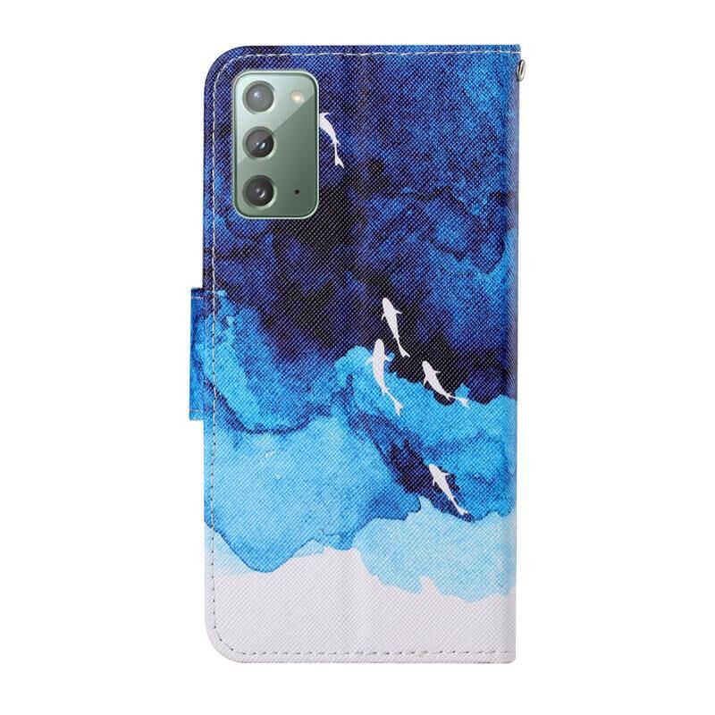 Θήκη δέρματος οριζόντιας αναδίπλωσης με σχέδιο πολύχρωμης ζωγραφικής για Samsung Galaxy Note20 με βάση, θήκες καρτών, πορτοφόλι & λουρί (Υδάτινα Ψάρια)