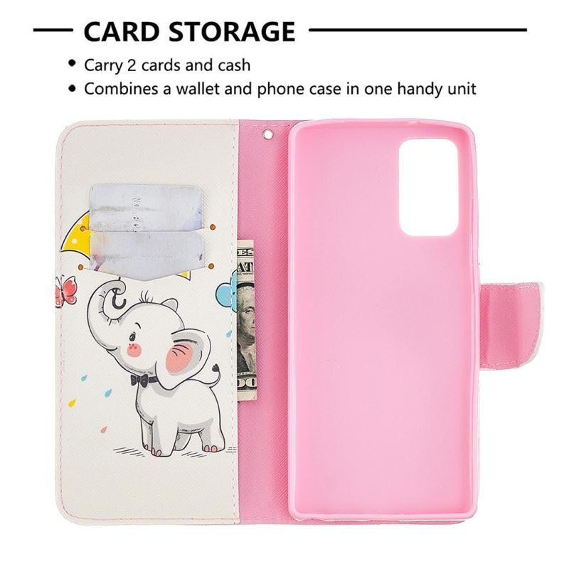 Θήκη δέρματος οριζόντιας αναδίπλωσης με σχέδιο έγχρωμης ζωγραφικής για Samsung Galaxy Note20 με βάση & υποδοχές καρτών & πορτοφόλι (Ελέφαντας)