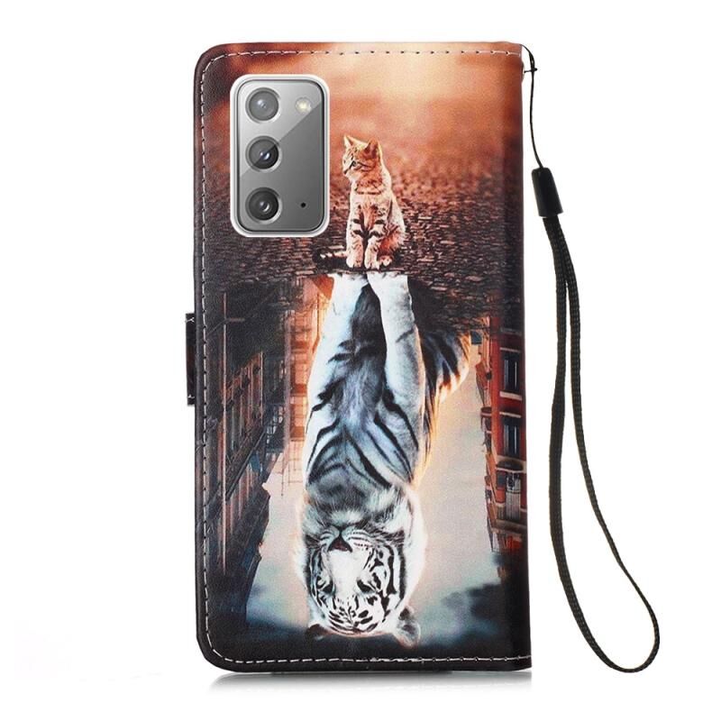 Θήκη δέρματος οριζόντιας αναδίπλωσης για Samsung Galaxy Note20 με σχέδιο πολύχρωμης ζωγραφικής, απλή ύφανση, με βάση & θήκη καρτών & πορτοφόλι & κορδόνι (Γάτες και Τίγρεις)