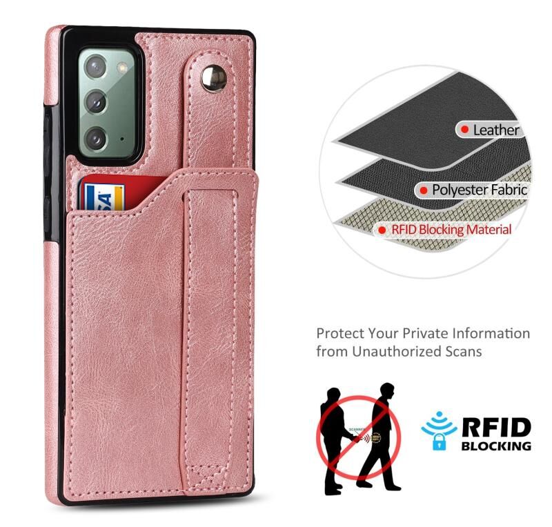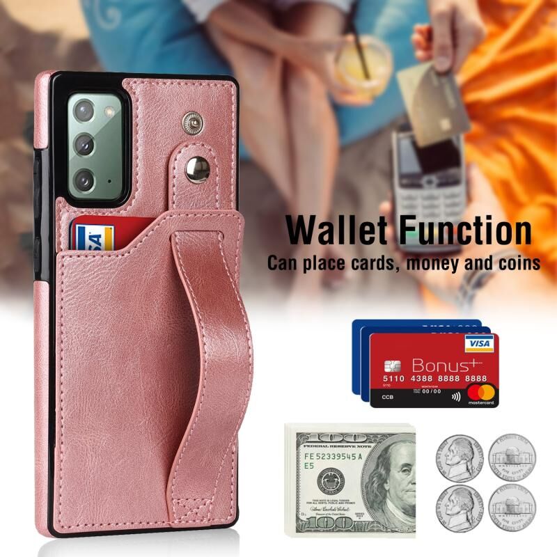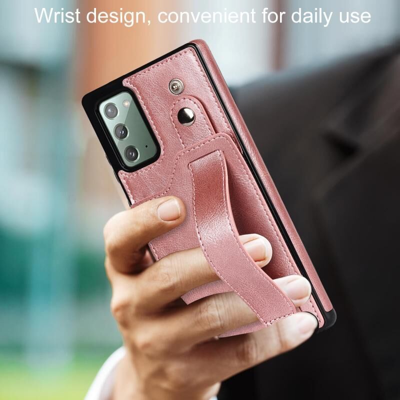 Για το Samsung Galaxy Note20 Crazy Horse Υφή Shockproof TPU + PU δέρμα υπόθεση με υποδοχή για κάρτες & στήριγμα λουράκι καρπού (Rose Gold)