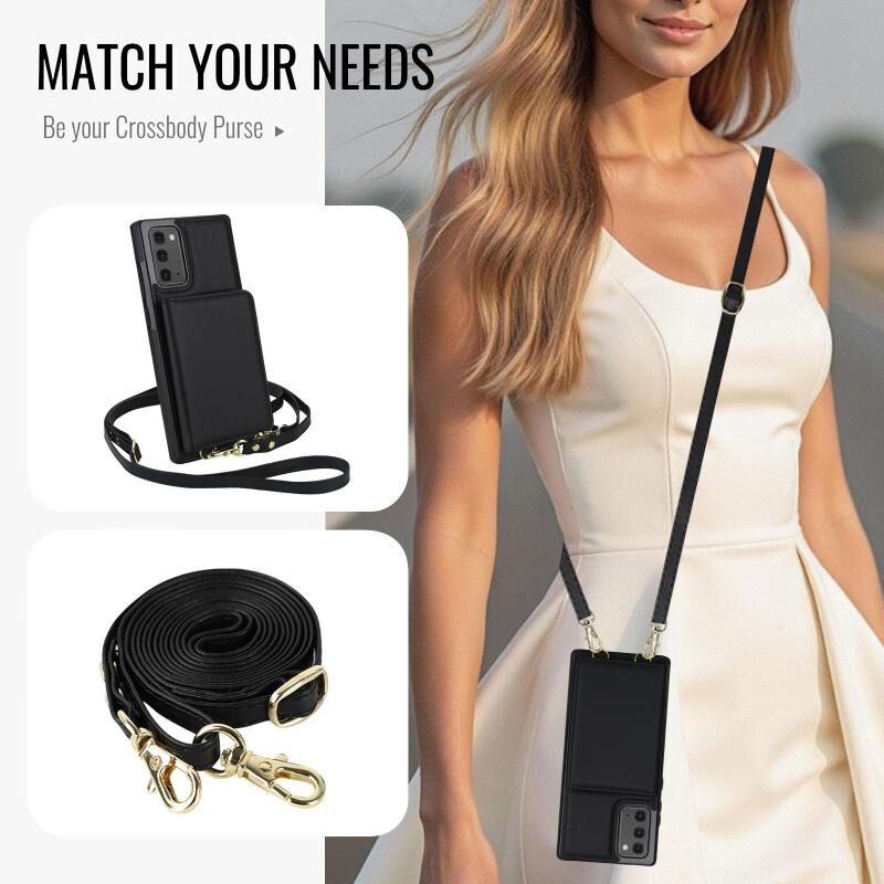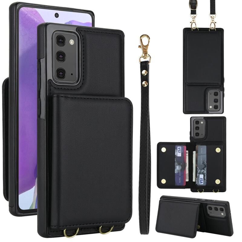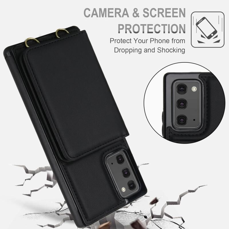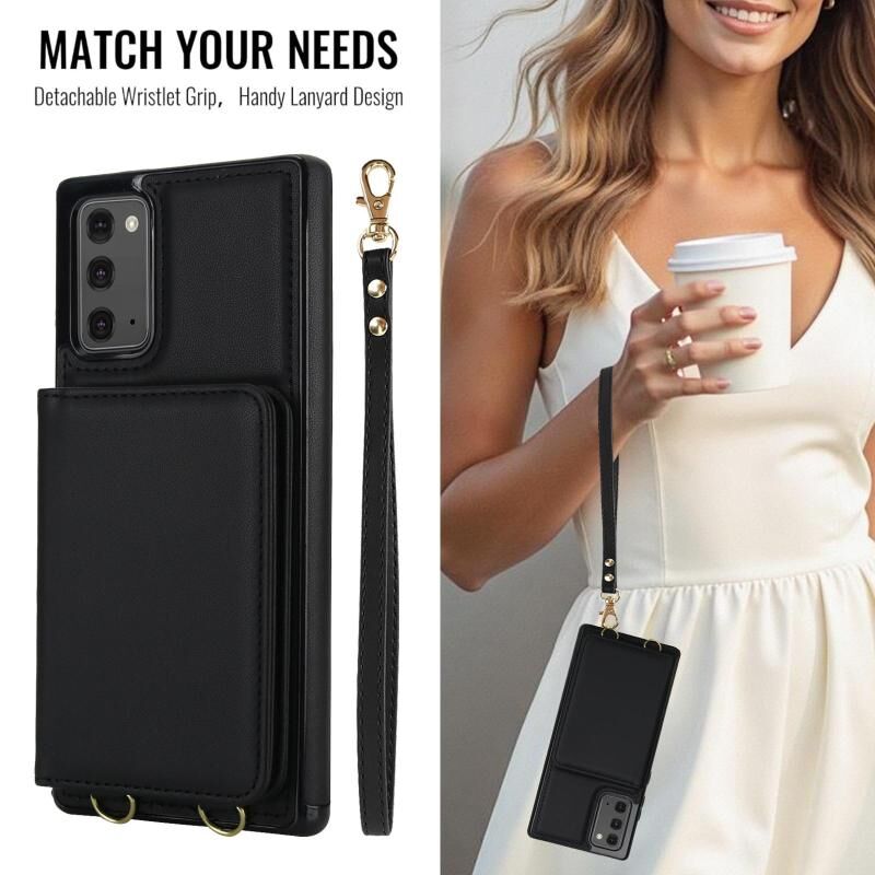 For Samsung Galaxy Note20 Crossbody Dual-buckle Wallet RFID Back Leather Phone Case(Black)