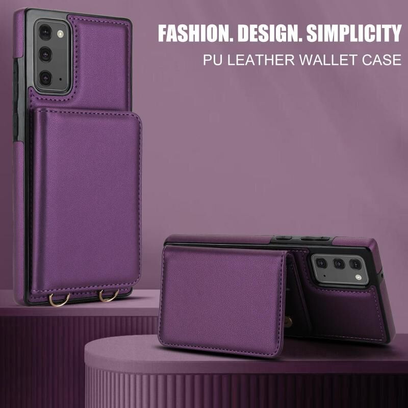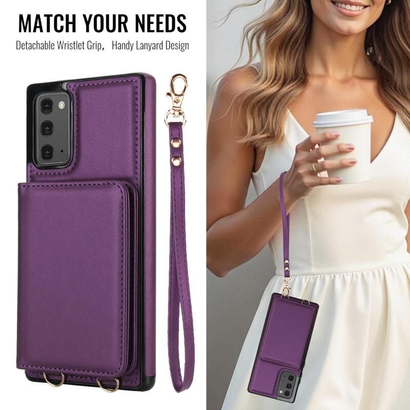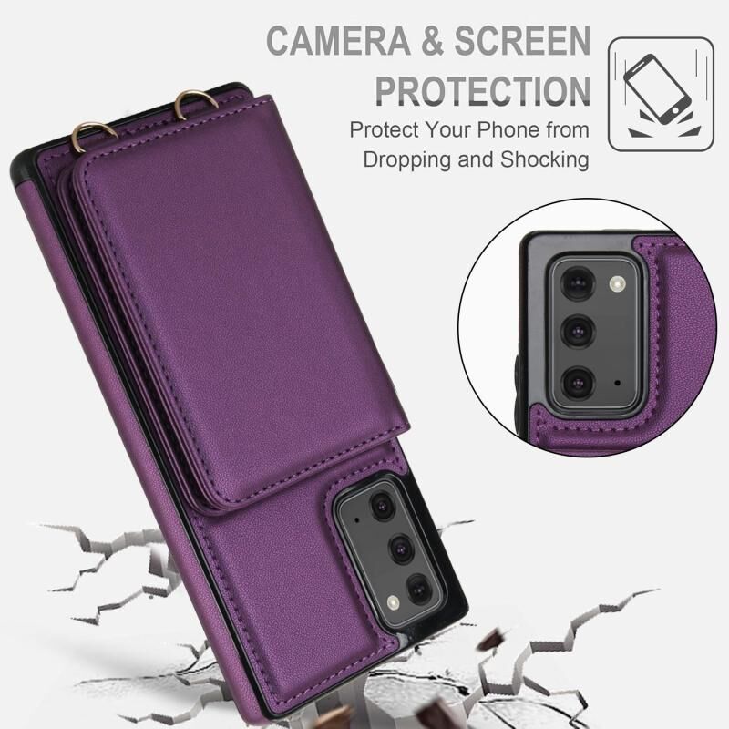 For Samsung Galaxy Note20 Crossbody Dual-buckle Wallet RFID Back Leather Phone Case(Dark Purple)