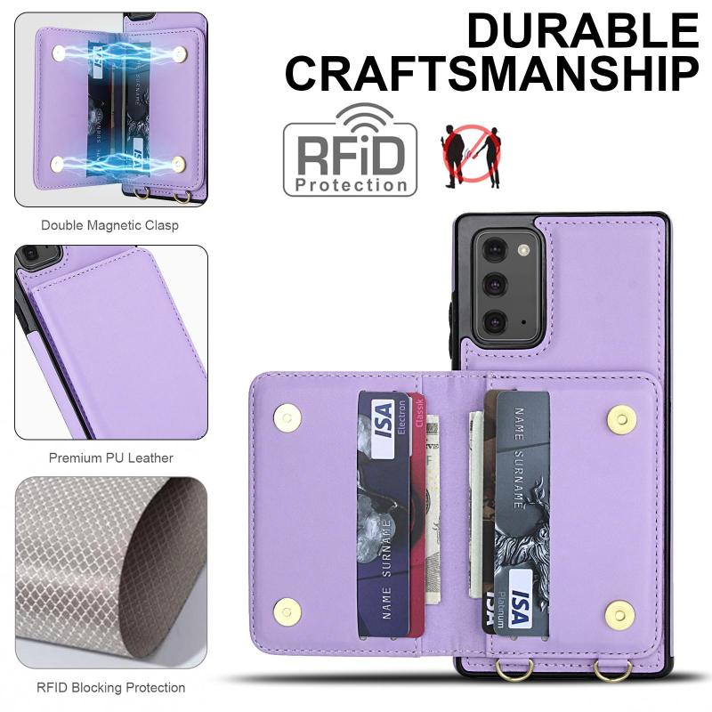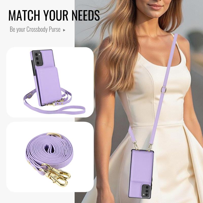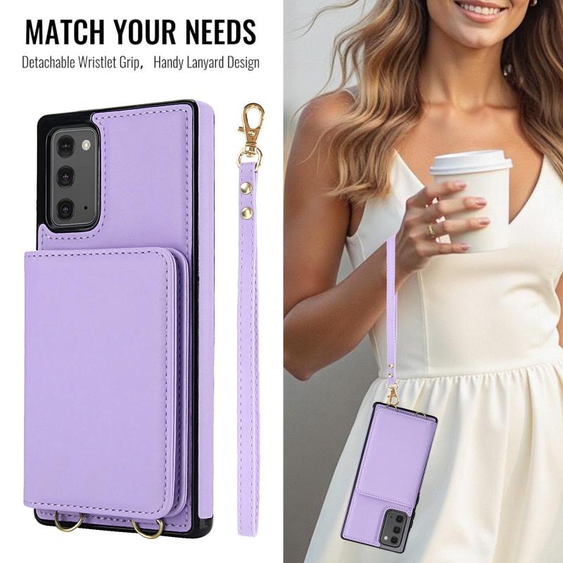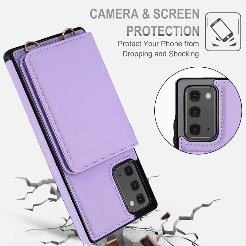 Για Samsung Galaxy Note20 Δερμάτινη Θήκη Πορτοφολιού με Λουρί & RFID (Ανοιχτό Μωβ)