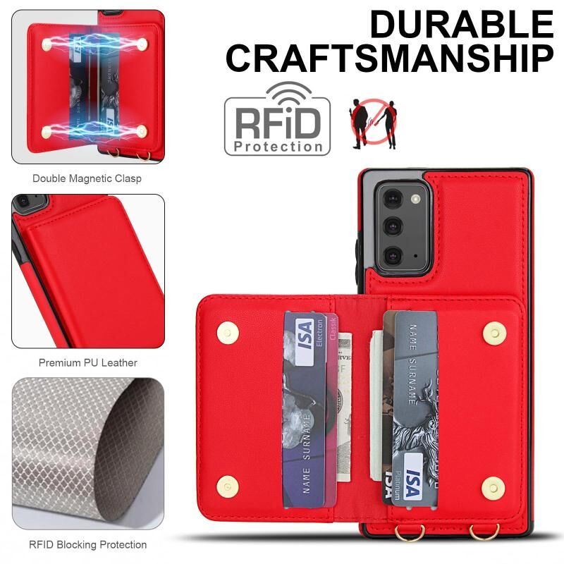 Για Samsung Galaxy Note20 Δερμάτινη Θήκη Πορτοφολιού με Λουρί & RFID (Κόκκινο)