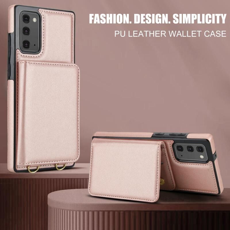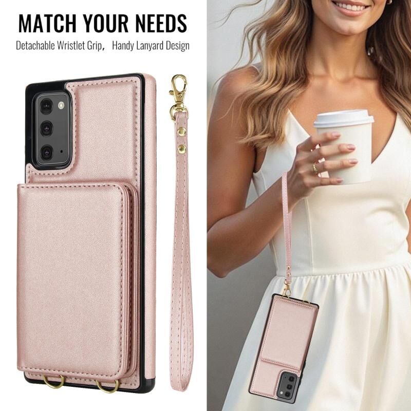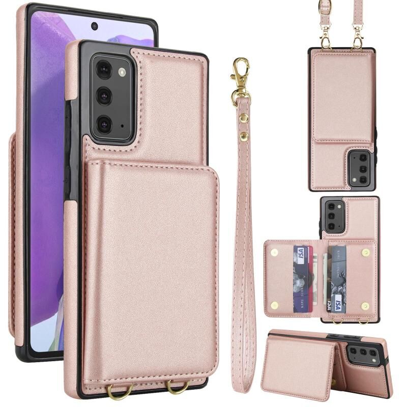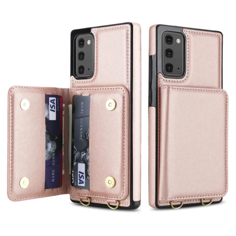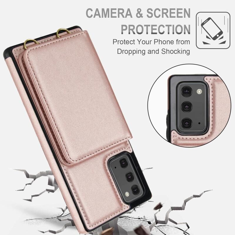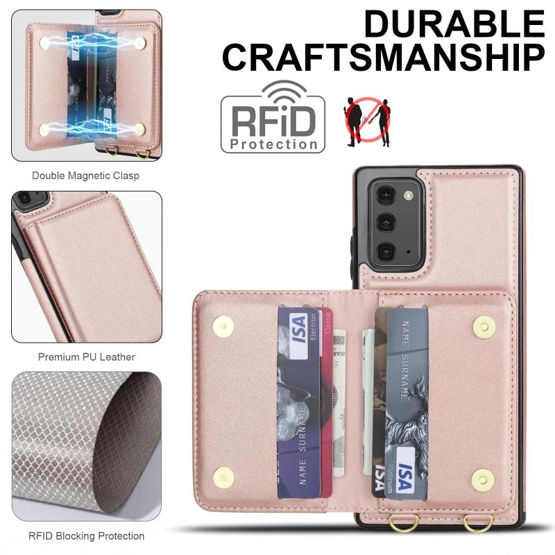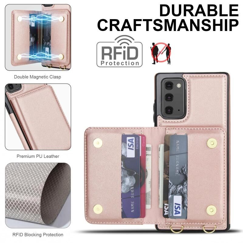 For Samsung Galaxy Note20 Crossbody Dual-buckle Wallet RFID Back Leather Phone Case(Rose Gold)