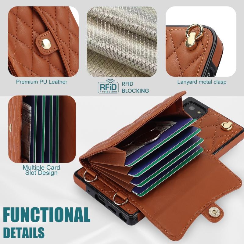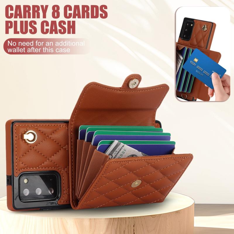 For Samsung Galaxy Note20 Crossbody Rhombic Horizontal Wallet Leather Phone Case(Brown)