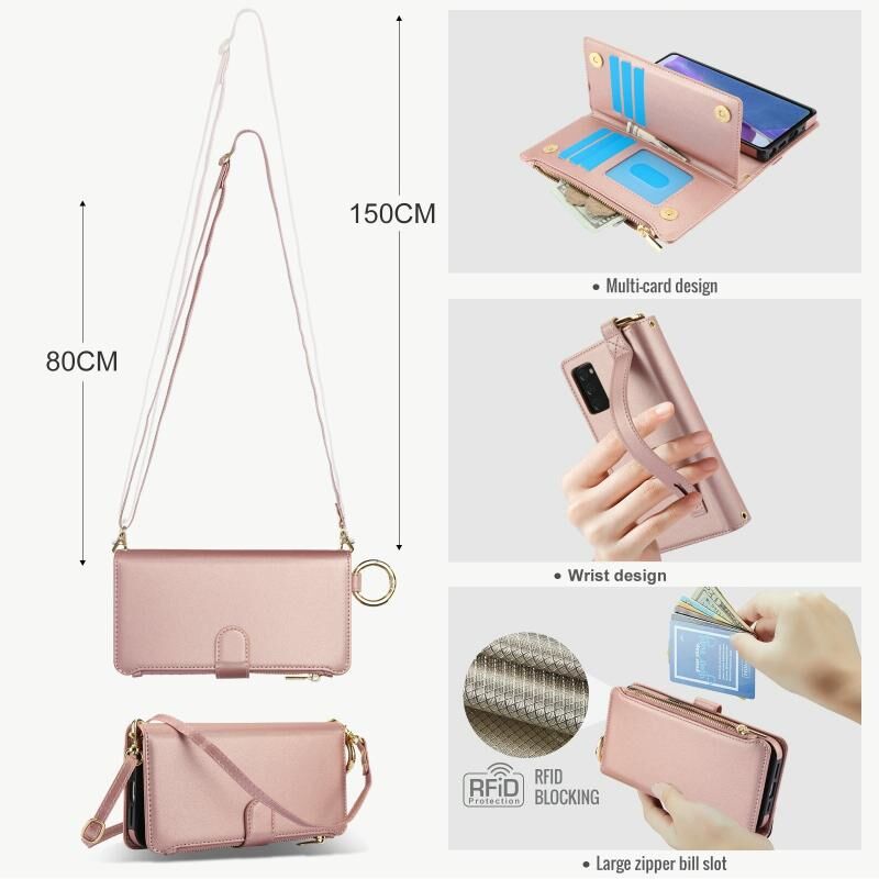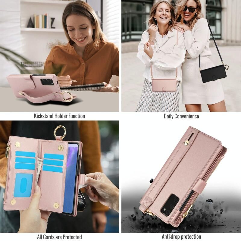 Για Samsung Galaxy Note20 Δαχτυλίδι Crossbody πολυλειτουργική πορτοφόλι δερμάτινη θήκη τηλεφώνου (Rose Gold)