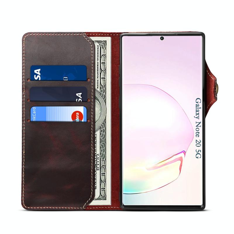Θήκη για Samsung Galaxy Note20 από γνήσιο δέρμα αγελάδας με κερί λαδιού Denior, με μαγνητικό κούμπωμα (Κόκκινο σκούρο) (Σκούρο κόκκινο)